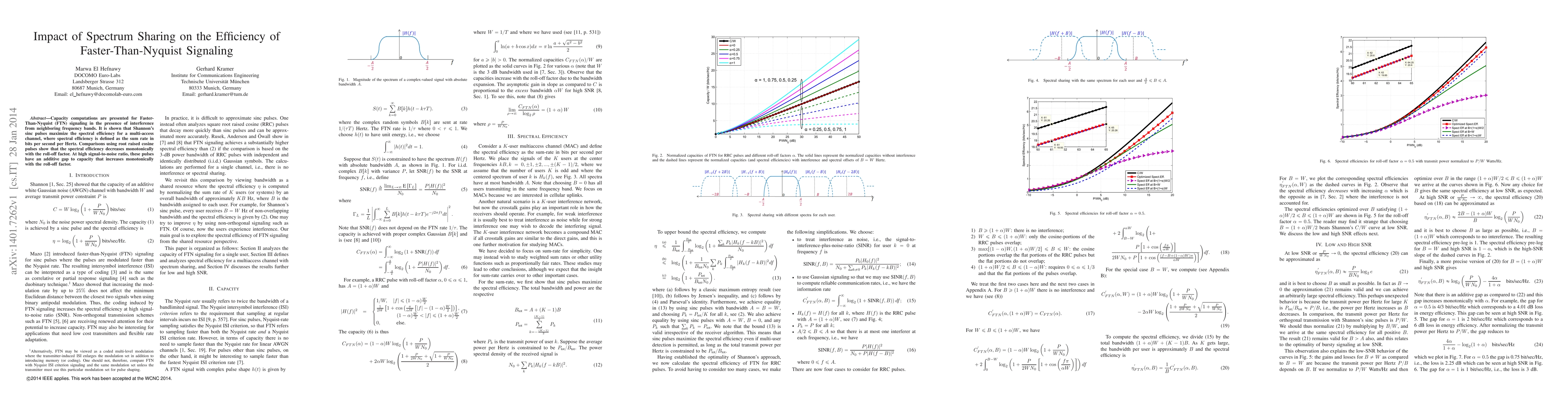 This paper investigates the efficiency of Faster-Than-Nyquist signaling under spectrum sharing, demonstrating that Shannon's sinc pulses maximize spectral efficiency. It finds that root raised cosine pulses lead to a monotonic decrease in spectral efficiency with increasing roll-off factor, especially at high signal-to-noise ratios.