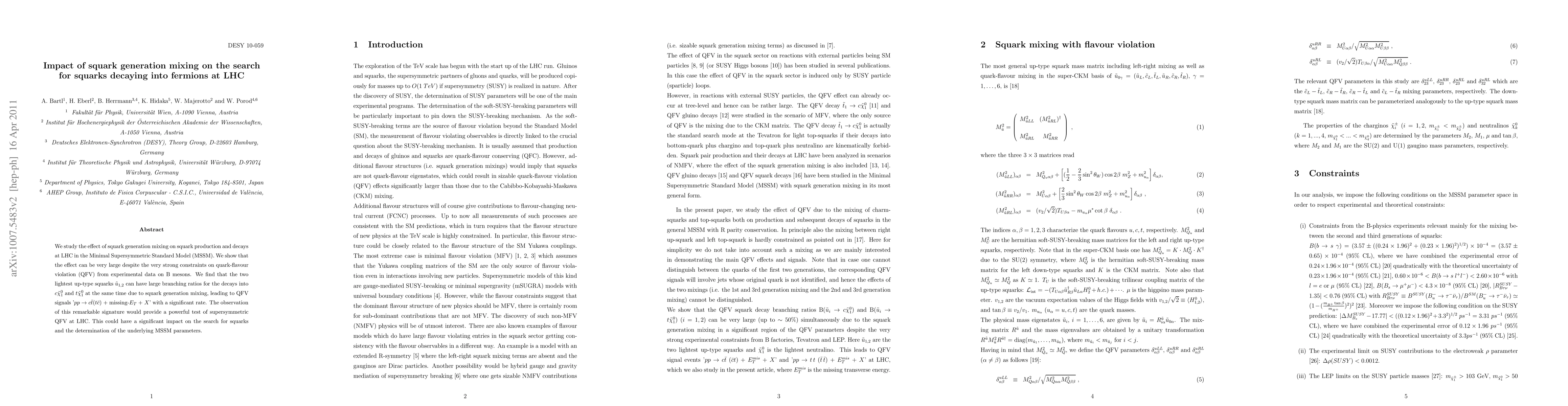 We study the effect of squark generation mixing on squark production and decays at LHC in the Minimal Supersymmetric Standard Model (MSSM). We show that the effect can be very large despite the very strong constraints on quark flavour violation (QFV) from experimental data on B mesons. We find that the two lightest up-type squarks su_{1,2} can have large branching ratios for the decays into 'c-quark + neutralino_1' and 't-quark + neutralino_1' at the same time due to squark generation mixing, leading to QFV signals 'pp -> c bar{t} (t bar{c}) + missing-E_T + X' with a significant rate. The observation of this remarkable signature would provide a powerful test of supersymmetric QFV at LHC. This could have a significant impact on the search for squarks and the determination of the underlying MSSM parameters.