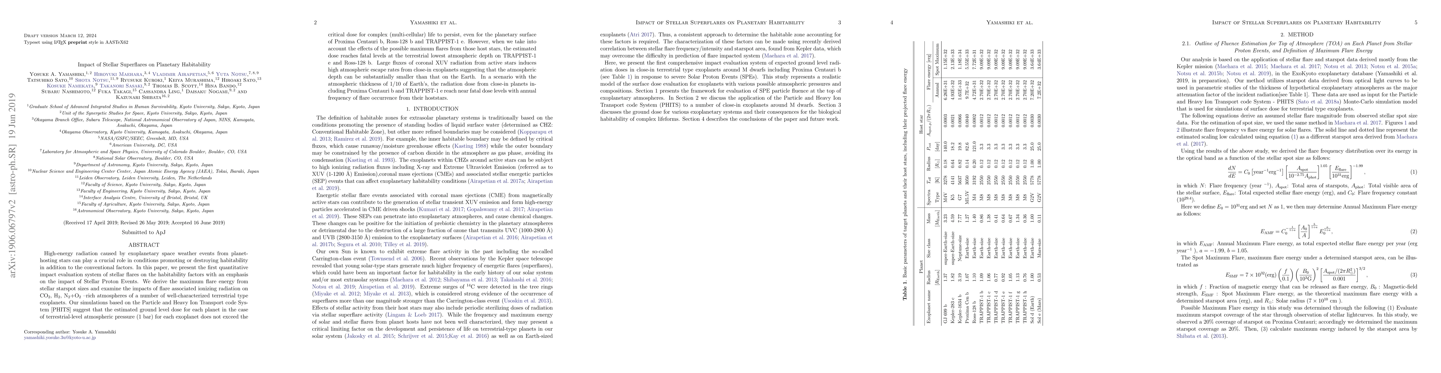 This paper evaluates the impact of stellar superflares on exoplanetary habitability, finding that while typical flares do not exceed critical doses for complex life, extreme flares can reach fatal levels, especially for planets with thin atmospheres. The study uses PHITS simulations to assess ionizing radiation effects on various exoplanet atmospheres.