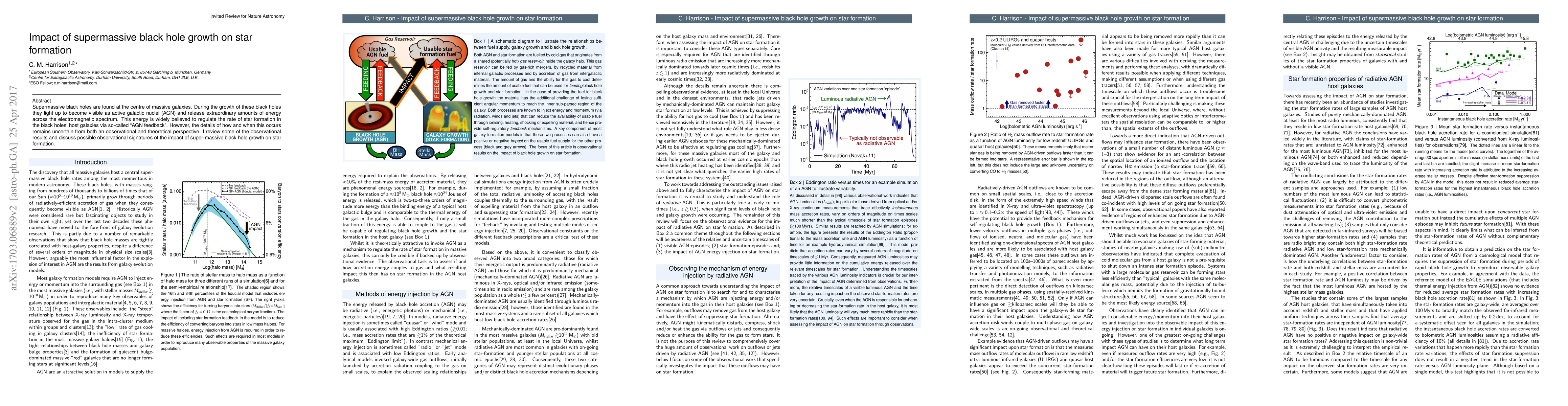Supermassive black holes are found at the centre of massive galaxies. During the growth of these black holes they light up to become visible as active galactic nuclei (AGN) and release extraordinary amounts of energy across the electromagnetic spectrum. This energy is widely believed to regulate the rate of star formation in the black holes' host galaxies via so-called "AGN feedback". However, the details of how and when this occurs remains uncertain from both an observational and theoretical perspective. I review some of the observational results and discuss possible observational signatures of the impact of super-massive black hole growth on star formation.
