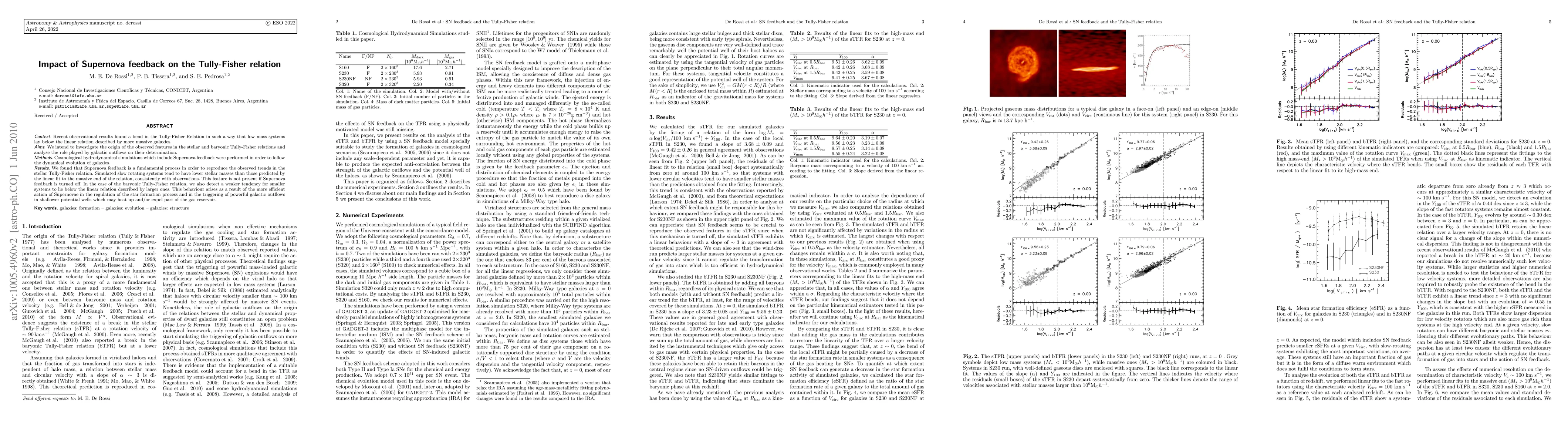 Recent observational results found a bend in the Tully-Fisher Relation in such a way that low mass systems lay below the linear relation described by more massive galaxies. We intend to investigate the origin of the observed features in the stellar and baryonic Tully-Fisher relations and analyse the role played by galactic outflows on their determination. Cosmological hydrodynamical simulations which include Supernova feedback were performed in order to follow the dynamical evolution of galaxies. We found that Supernova feedback is a fundamental process in order to reproduce the observed trends in the stellar Tully-Fisher relation. Simulated slow rotating systems tend to have lower stellar masses than those predicted by the linear fit to the massive end of the relation, consistently with observations. This feature is not present if Supernova feedback is turned off. In the case of the baryonic Tully-Fisher relation, we also detect a weaker tendency for smaller systems to lie below the linear relation described by larger ones. This behaviour arises as a result of the more efficient action of Supernovae in the regulation of the star formation process and in the triggering of powerful galactic outflows in shallower potential wells which may heat up and/or expel part of the gas reservoir.