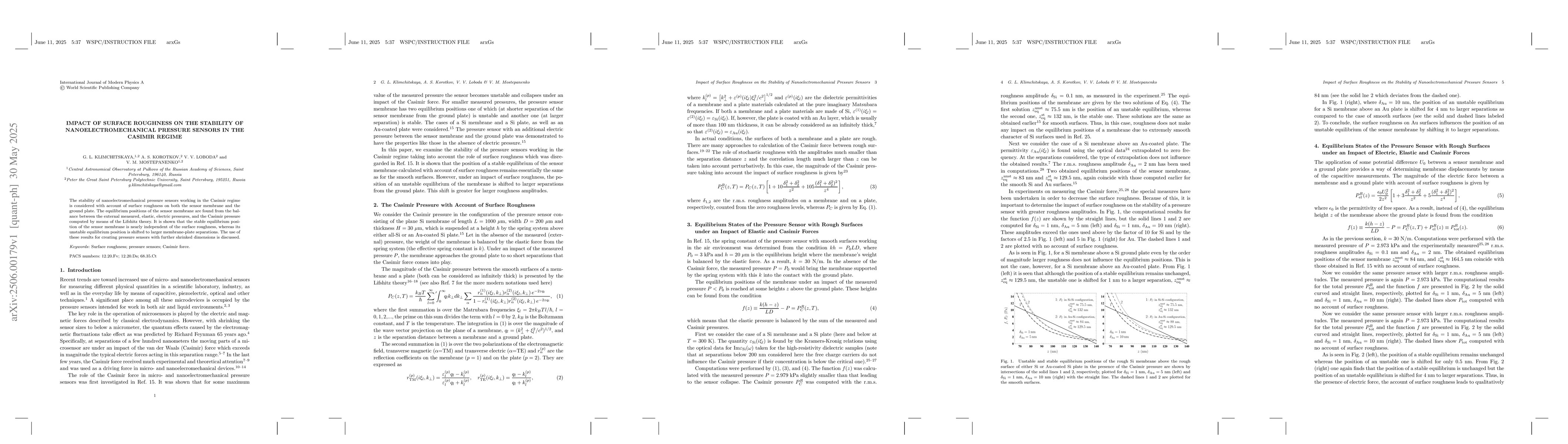 The stability of nanoelectromechanical pressure sensors in the Casimir regime is influenced by surface roughness, with stable equilibrium positions remaining unaffected and unstable positions shifted to larger separations.