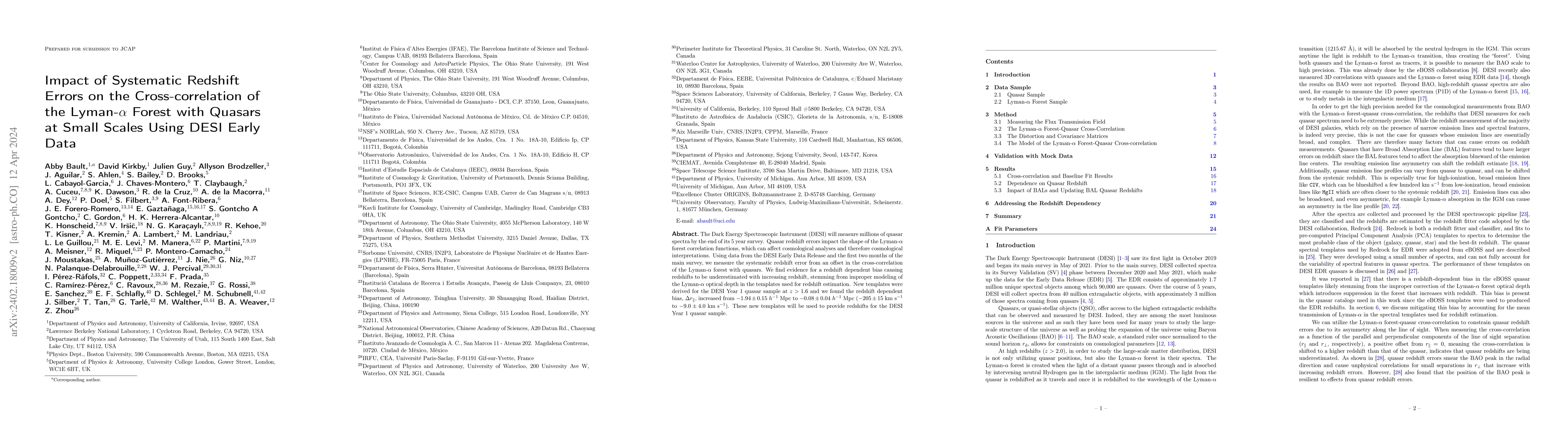 This paper investigates systematic redshift errors in the Dark Energy Spectroscopic Instrument (DESI) Early Data, showing a redshift-dependent bias that underestimates quasar redshifts at higher redshifts due to improper modeling of the Lyman-$\alpha$ optical depth. New templates were developed, reducing the bias from $-205 \pm 15$ km s$^{-1}$ to $-9.0 \pm 4.0$ km s$^{-1}$.