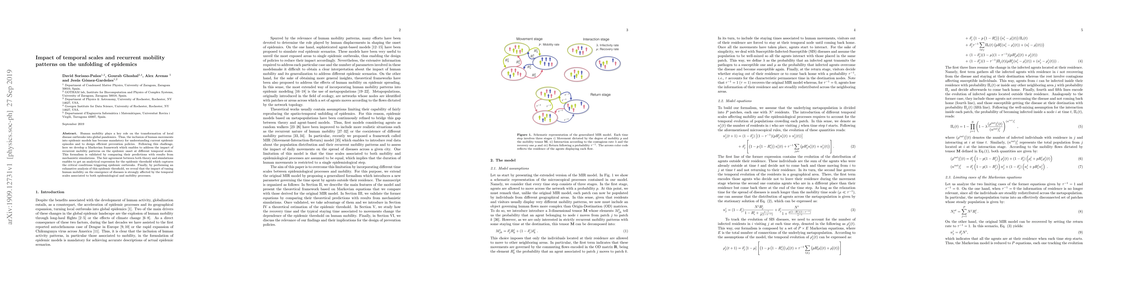 This paper develops a Markovian framework to analyze how recurrent human mobility patterns influence epidemic spread across different temporal scales. The model's predictions align well with mechanistic simulations, providing an analytical expression for the epidemic threshold and revealing the critical conditions for outbreak onset, highlighting the significant impact of temporal scales on disease emergence.