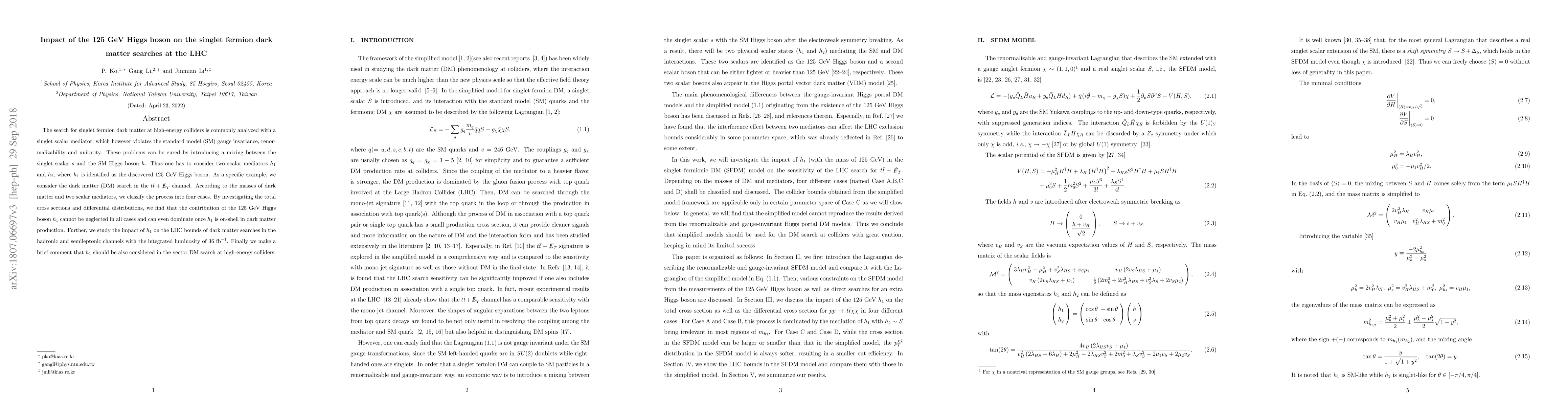 The search for singlet fermion dark matter at high-energy colliders is commonly analyzed with a singlet scalar mediator, which however violates the standard model (SM) gauge invariance, renormalizability and unitarity. These problems can be cured by introducing a mixing between the singlet scalar $s$ and the SM Higgs boson $h$. Thus one has to consider two scalar mediators $h_1$ and $h_2$, where $h_1$ is identified as the discovered 125 GeV Higgs boson. As a specific example, we consider the dark matter (DM) search in the $t \bar{t} + E_{T}^{\text{miss}}$ channel. According to the masses of dark matter and two scalar mediators, we classify the process into four cases. By investigating the total cross sections and differential distributions, we find that the contribution of the 125~GeV Higgs boson $h_1$ cannot be neglected in all cases and can even dominate once $h_1$ is on-shell in dark matter production. Further, we study the impact of $h_1$ on the LHC bounds of dark matter searches in the hadronic and semileptonic channels with the integrated luminosity of $36~\text{fb}^{-1}$. Finally we make a brief comment that $h_1$ should be also considered in the vector DM search at high-energy colliders.