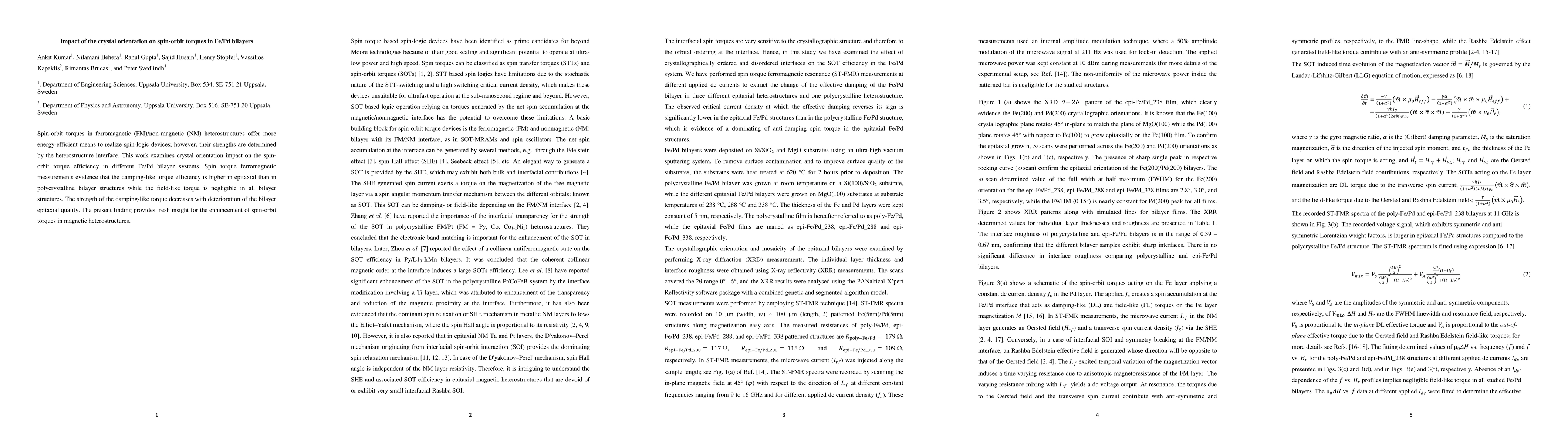 Spin-orbit torques in ferromagnetic (FM)/non-magnetic (NM) heterostructures offer more energy-efficient means to realize spin-logic devices; however, their strengths are determined by the heterostructure interface. This work examines crystal orientation impact on the spin-orbit torque efficiency in different Fe/Pd bilayer systems. Spin torque ferromagnetic measurements evidence that the damping-like torque efficiency is higher in epitaxial than in polycrystalline bilayer structures while the field-like torque is negligible in all bilayer structures. The strength of the damping-like torque decreases with deterioration of the bilayer epitaxial quality. The present finding provides fresh insight for the enhancement of spin-orbit torques in magnetic heterostructures.