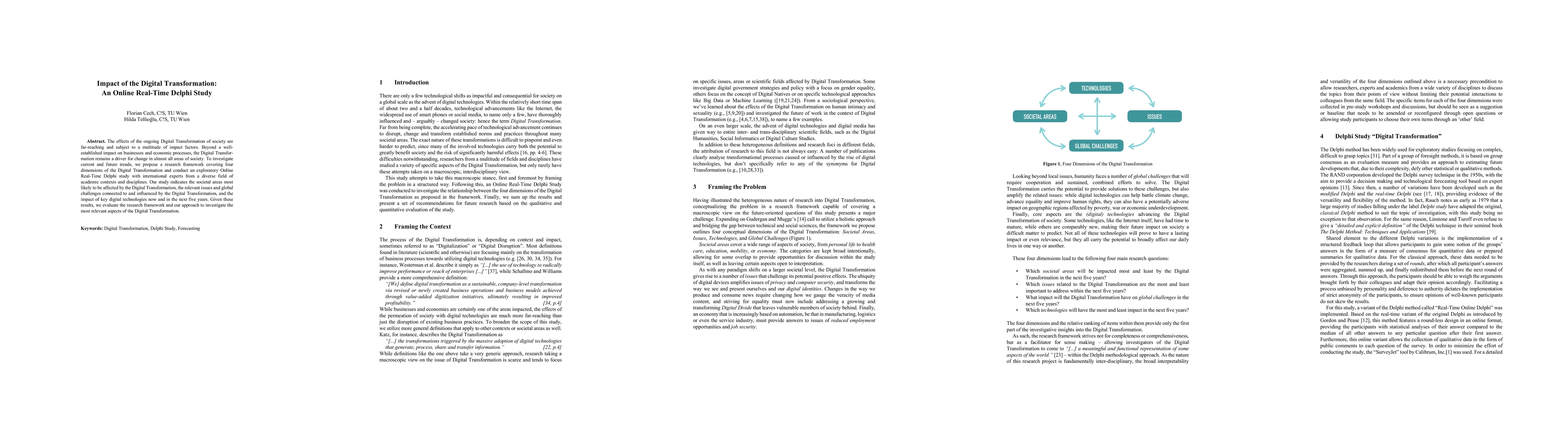 This study explores the broad impacts of Digital Transformation through an Online Real-Time Delphi method involving international experts. The research identifies key societal areas affected, relevant issues, and global challenges, highlighting the influence of key digital technologies now and in the next five years.