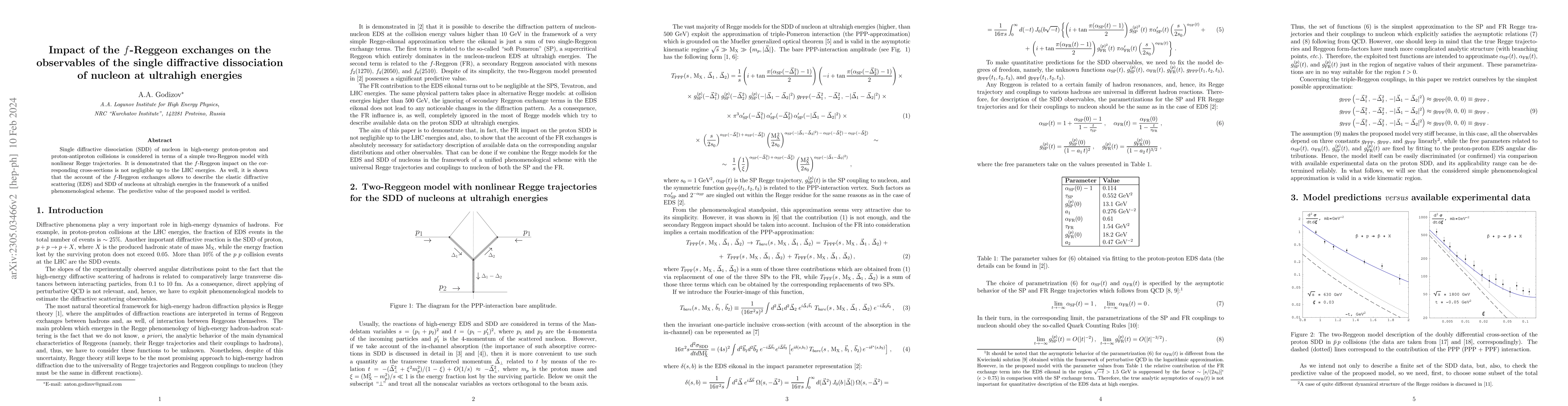 Single diffractive dissociation (SDD) of nucleon in high-energy proton-proton and proton-antiproton collisions is considered in terms of a simple two-Reggeon model with nonlinear Regge trajectories. It is demonstrated that the $f$-Reggeon impact on the corresponding cross-sections is not negligible up to the LHC energies. As well, it is shown that the account of the $f$-Reggeon exchanges allows to describe the elastic diffractive scattering (EDS) and SDD of nucleons at ultrahigh energies in the framework of a unified phenomenological scheme. The predictive value of the proposed model is verified.
