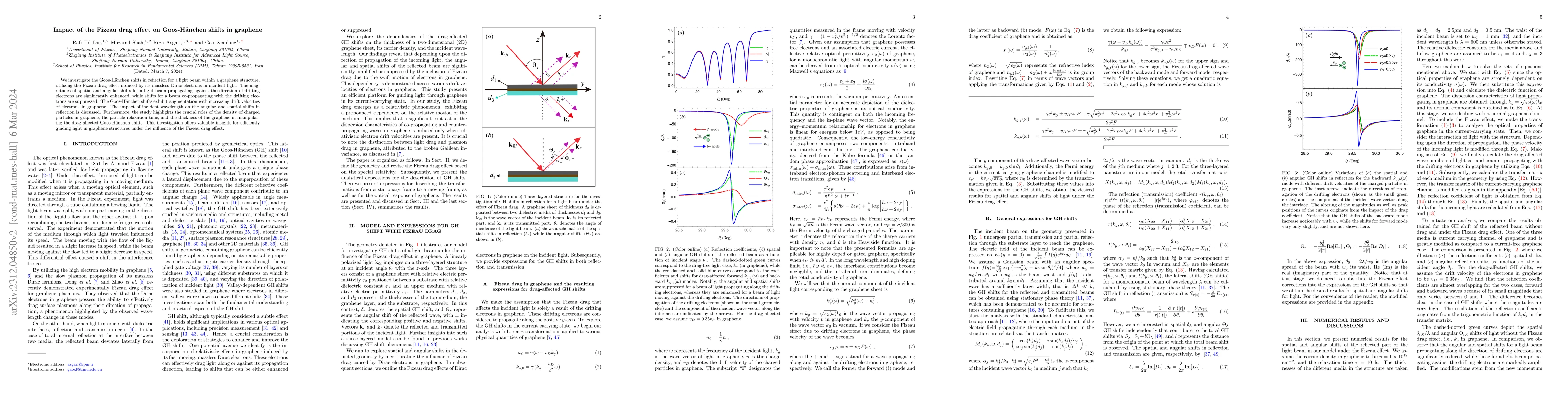 This paper examines how the Fizeau drag effect, caused by massless Dirac electrons in graphene, influences Goos-Hänchen shifts during light reflection. It finds that shifts are enhanced when light opposes electron drift but suppressed when it aligns with it, with the magnitude depending on the drift velocity, wavelength, density of charged particles, relaxation time, and graphene thickness.