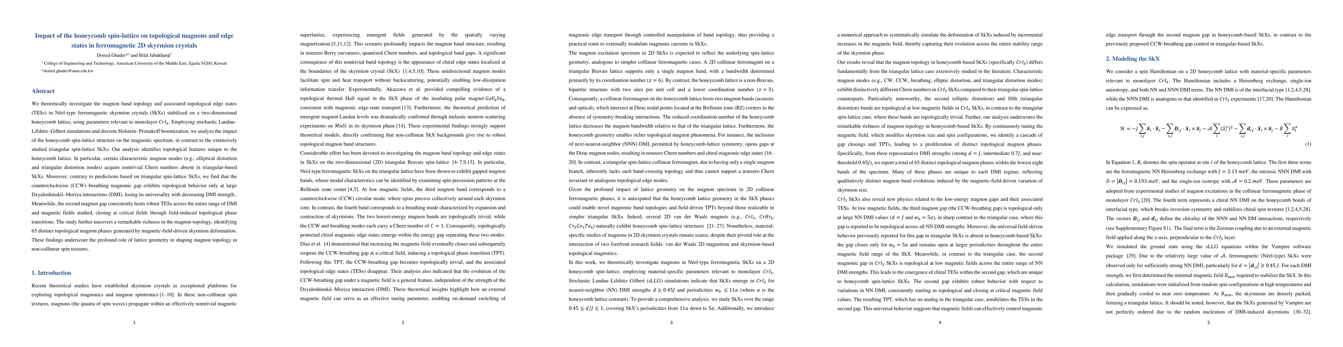 Researchers investigate how a honeycomb spin-lattice affects magnon band topology in ferromagnetic 2D skyrmion crystals, discovering unique topological features and robust edge states under varying magnetic fields.