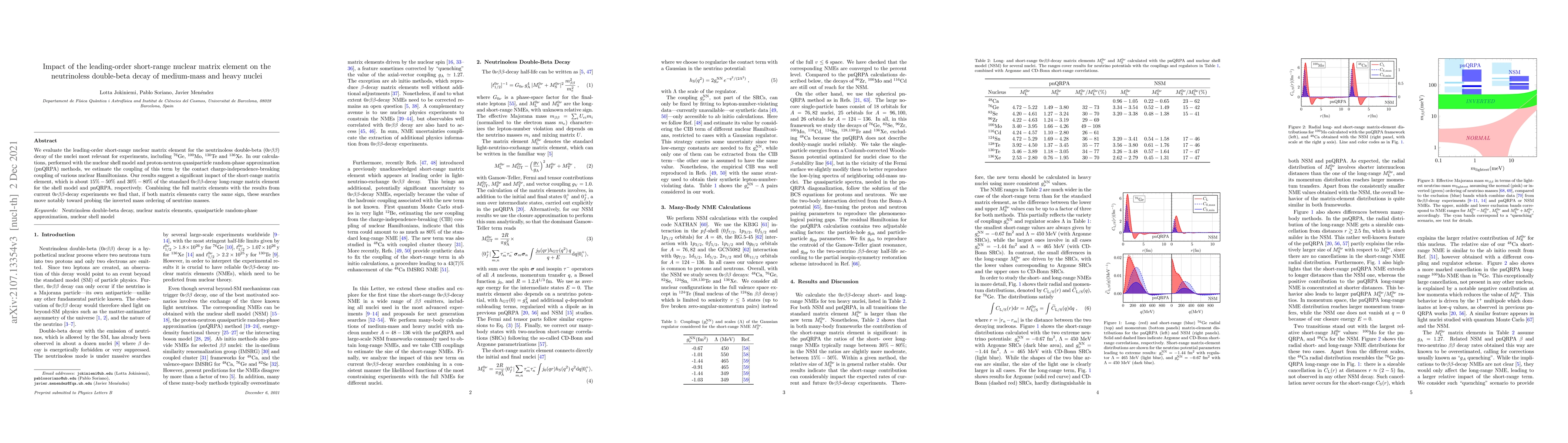 This research evaluates the leading-order short-range nuclear matrix element's impact on neutrinoless double-beta decay in nuclei like Ge-76, Mo-100, Te-130, and Xe-136. Utilizing the nuclear shell model and pnQRPA methods, the study finds that this short-range element significantly contributes 15%-50% and 30%-80% of the long-range matrix element for shell model and pnQRPA, respectively. The combined full matrix elements suggest that if both have the same sign, ongoing 0νββ-decay experiments could strongly indicate an inverted neutrino mass ordering.