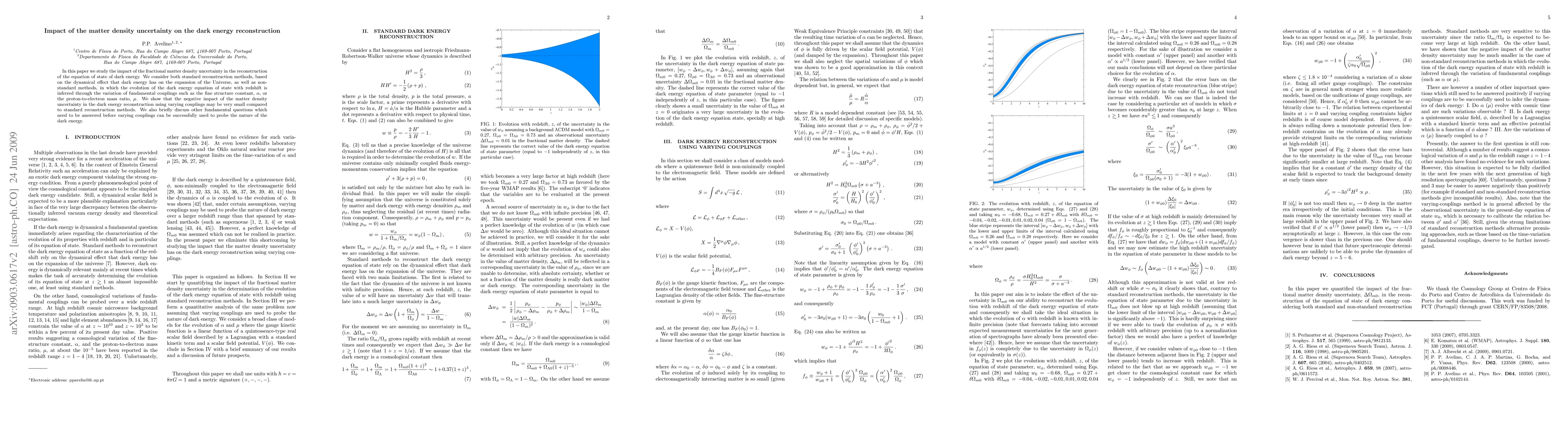 This paper investigates how uncertainties in matter density affect the reconstruction of the dark energy equation of state using both standard and non-standard methods, finding that uncertainties may have less impact using varying fundamental coupling constants. It also highlights the need for further research to effectively utilize these methods.