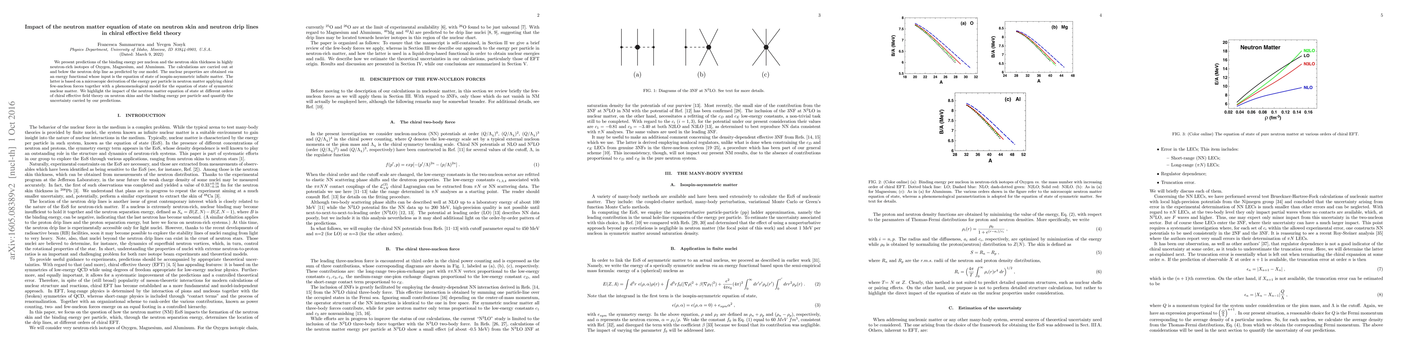 We present predictions of the binding energy per nucleon and the neutron skin thickness in highly neutron-rich isotopes of Oxygen, Magnesium, and Aluminum. The calculations are carried out at and below the neutron drip line as predicted by our model. The nuclear properties are obtained via an energy functional whose input is the equation of state of isospin-asymmetric infinite matter. The latter is based on a microscopic derivation of the energy per particle in neutron matter applying chiral few-nucleon forces together with a phenomenological model for the equation of state of symmetric nuclear matter. We highlight the impact of the neutron matter equation of state at different orders of chiral effective field theory on neutron skins and the binding energy per particle and quantify the uncertainty carried by our predictions.