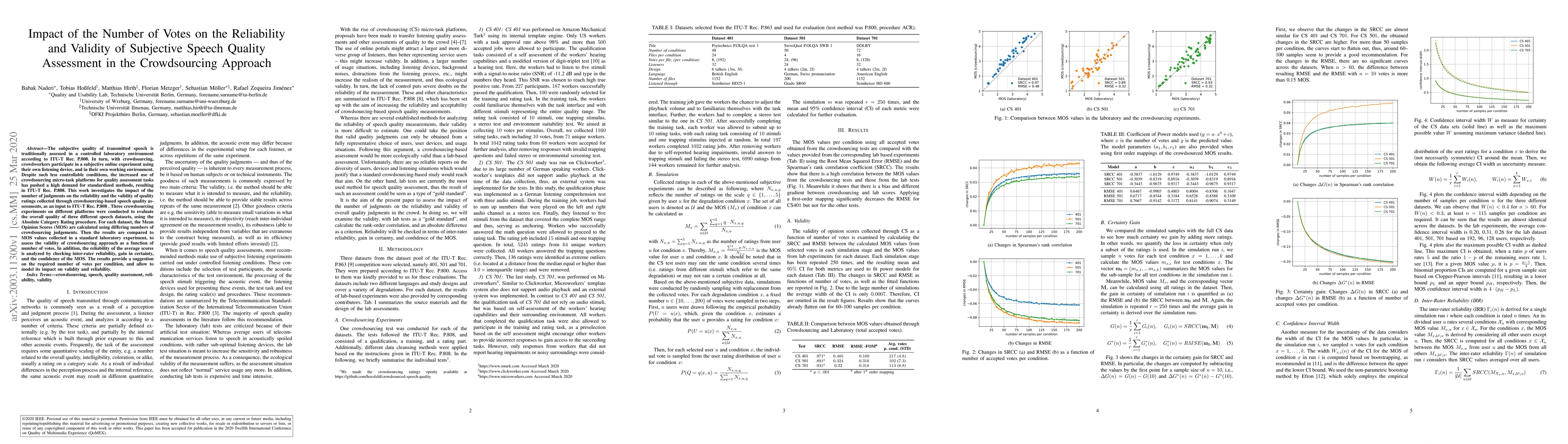 This study examines how the number of crowdworker votes influences the reliability and validity of subjective speech quality assessments conducted via crowdsourcing. By comparing Mean Opinion Scores (MOS) from crowdsourcing experiments to those from controlled lab settings, the research determines the optimal number of votes needed to ensure accurate and reliable quality ratings.