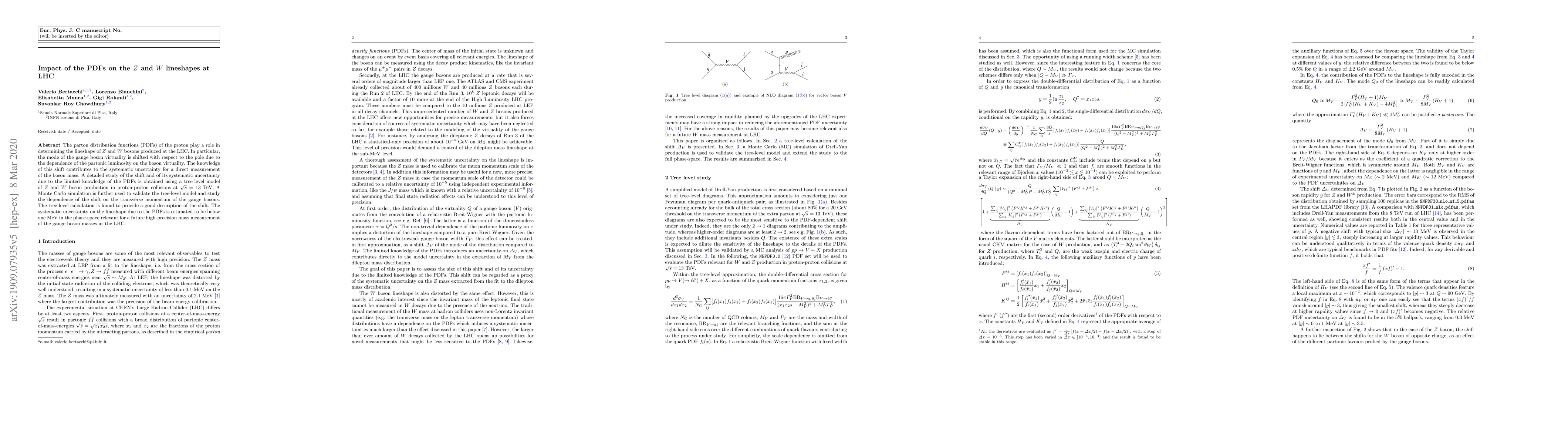This paper investigates how parton distribution functions (PDFs) affect the lineshape of $Z$ and $W$ bosons at the LHC, finding a shift in the gauge boson virtuality mode. The systematic uncertainty due to PDFs is estimated to be below one MeV, aiding future high-precision mass measurements.