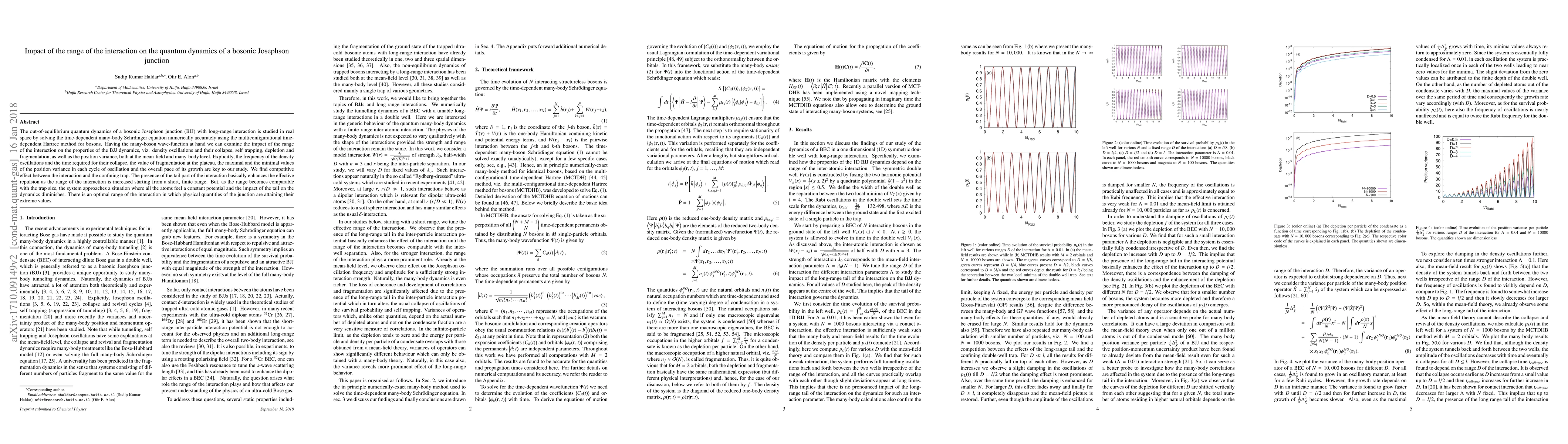 This research investigates the quantum dynamics of a bosonic Josephson junction with long-range interactions, revealing how the interaction range influences density oscillations, self-trapping, and fragmentation. The study finds an optimal interaction range where physical quantities reach extreme values, highlighting a competitive effect between interaction and the confining trap.