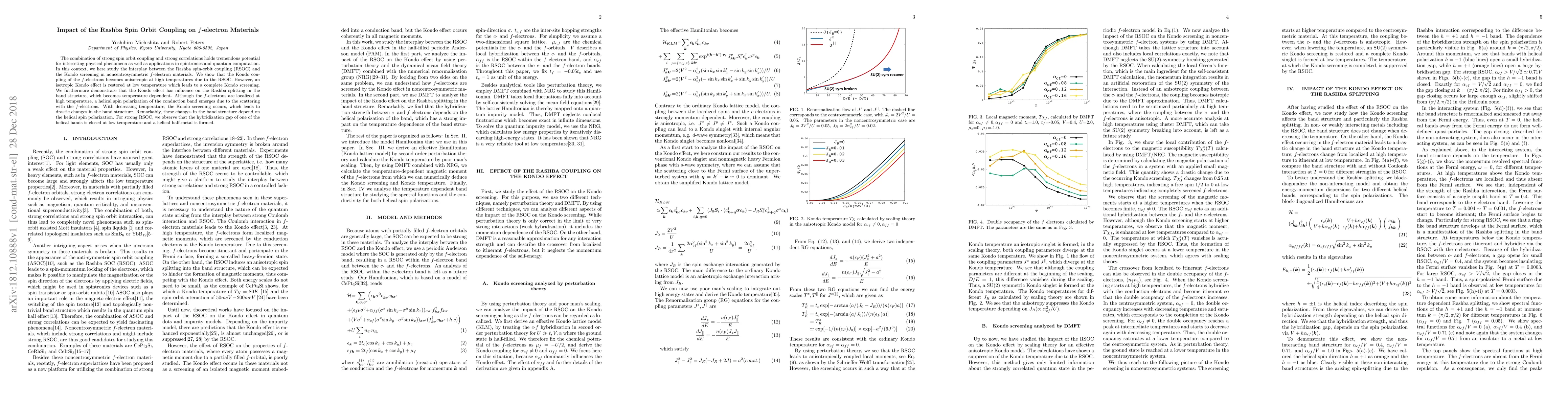 This paper investigates the effects of Rashba spin-orbit coupling on $f$-electron materials, revealing that high-temperature anisotropy in Kondo coupling is restored at low temperatures, leading to complete Kondo screening. The study also finds that the Kondo effect influences temperature-dependent Rashba splitting and induces a helical half-metal state at low temperatures.