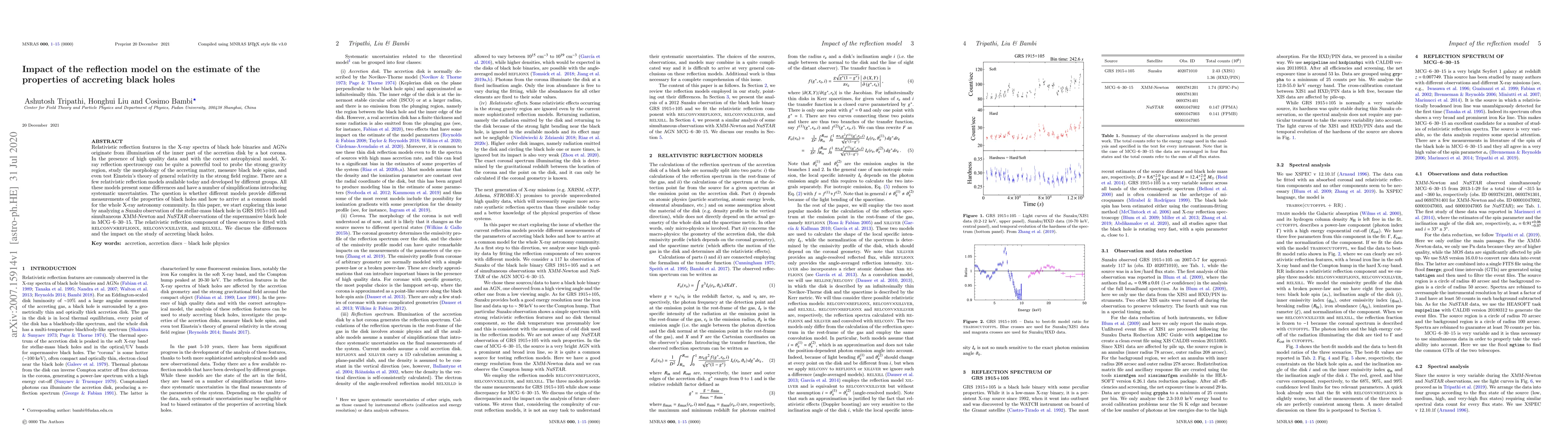 Relativistic reflection features in the X-ray spectra of black hole binaries and AGNs originate from illumination of the inner part of the accretion disk by a hot corona. In the presence of high quality data and with the correct astrophysical model, X-ray reflection spectroscopy can be quite a powerful tool to probe the strong gravity region, study the morphology of the accreting matter, measure black hole spins, and even test Einstein's theory of general relativity in the strong field regime. There are a few relativistic reflection models available today and developed by different groups. All these models present some differences and have a number of simplifications introducing systematic uncertainties. The question is whether different models provide different measurements of the properties of black holes and how to arrive at a common model for the whole X-ray astronomy community. In this paper, we start exploring this issue by analyzing a Suzaku observation of the stellar-mass black hole in GRS 1915+105 and simultaneous XMM-Newton and NuSTAR observations of the supermassive black hole in MCG-6-30-15. The relativistic reflection component of these sources is fitted with RELCONV$\times$REFLIONX, RELCONV$\times$XILLVER, and RELXILL. We discuss the differences and the impact on the study of accreting black holes.
