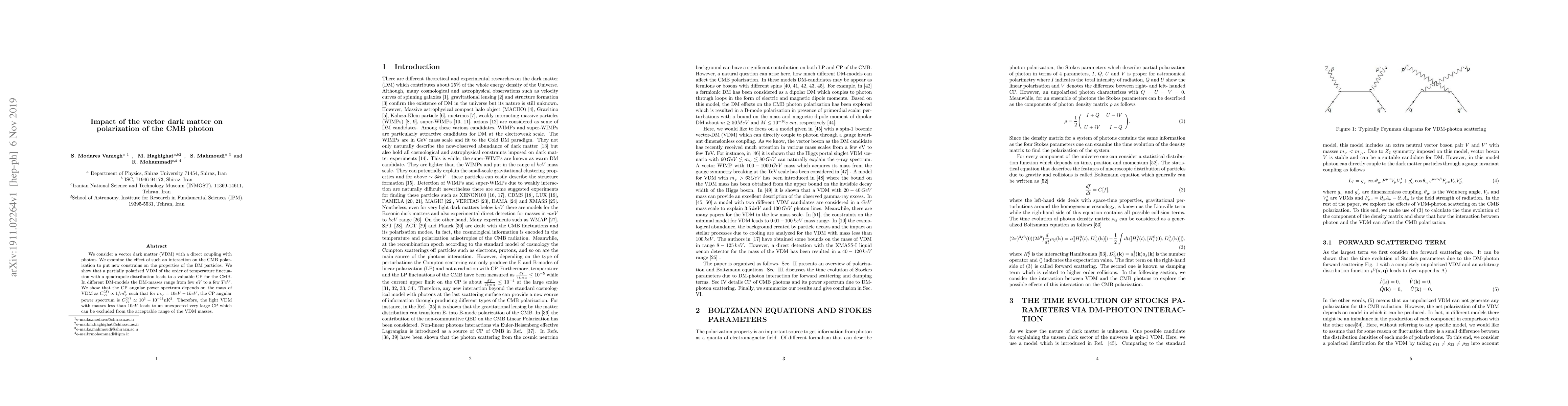 A new study examines how a vector dark matter particle's interaction with photons affects CMB polarization, finding that very light particles can produce an unexpectedly large signature that could be excluded from acceptable VDM masses.