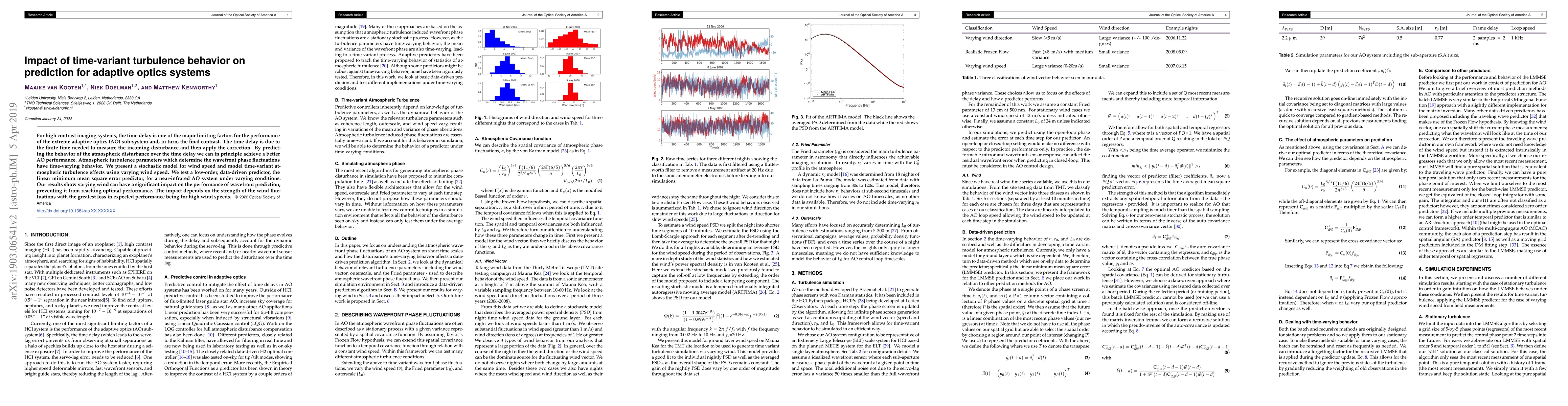 This paper investigates how time-variant atmospheric turbulence affects the performance of adaptive optics (AO) systems, proposing a stochastic model to predict turbulence behavior. Results indicate that wind speed fluctuations significantly impact wavefront prediction, leading to suboptimal performance, especially under high wind speeds.