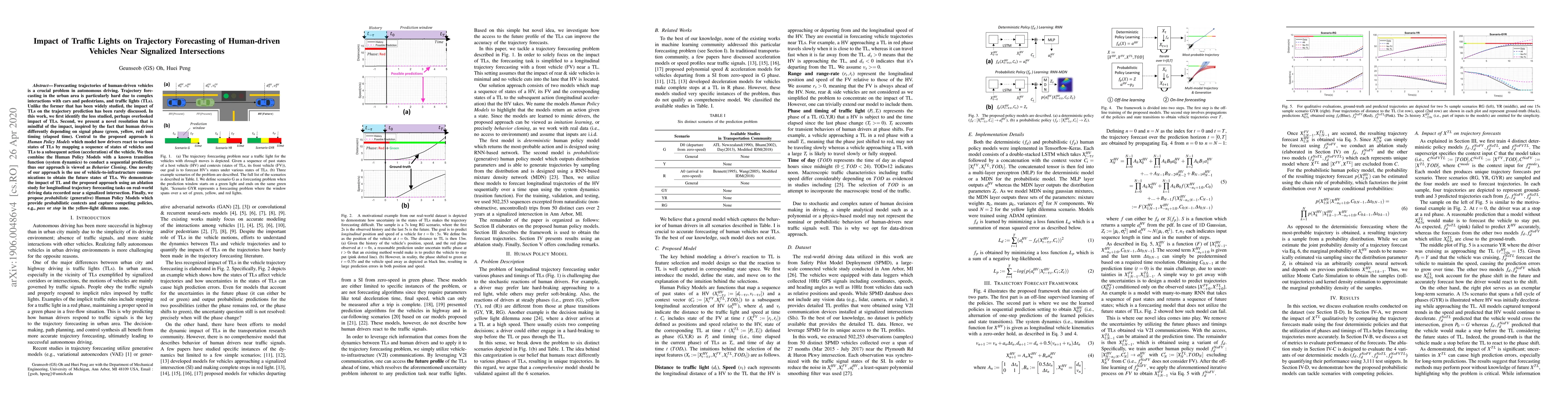 Forecasting trajectories of human-driven vehicles is a crucial problem in autonomous driving. Trajectory forecasting in the urban area is particularly hard due to complex interactions with cars and pedestrians, and traffic lights (TLs). Unlike the former that has been widely studied, the impact of TLs on the trajectory prediction has been rarely discussed. In this work, we first identify the less studied, perhaps overlooked impact of TLs. Second, we present a novel resolution that is mindful of the impact, inspired by the fact that human drives differently depending on signal phase (green, yellow, red) and timing (elapsed time). Central to the proposed approach is Human Policy Models which model how drivers react to various states of TLs by mapping a sequence of states of vehicles and TLs to a subsequent action (acceleration) of the vehicle. We then combine the Human Policy Models with a known transition function (system dynamics) to conduct a sequential prediction; thus our approach is viewed as Behavior Cloning. One novelty of our approach is the use of vehicle-to-infrastructure communications to obtain the future states of TLs. We demonstrate the impact of TL and the proposed approach using an ablation study for longitudinal trajectory forecasting tasks on real-world driving data recorded near a signalized intersection. Finally, we propose probabilistic (generative) Human Policy Models which provide probabilistic contexts and capture competing policies, e.g., pass or stop in the yellow-light dilemma zone.