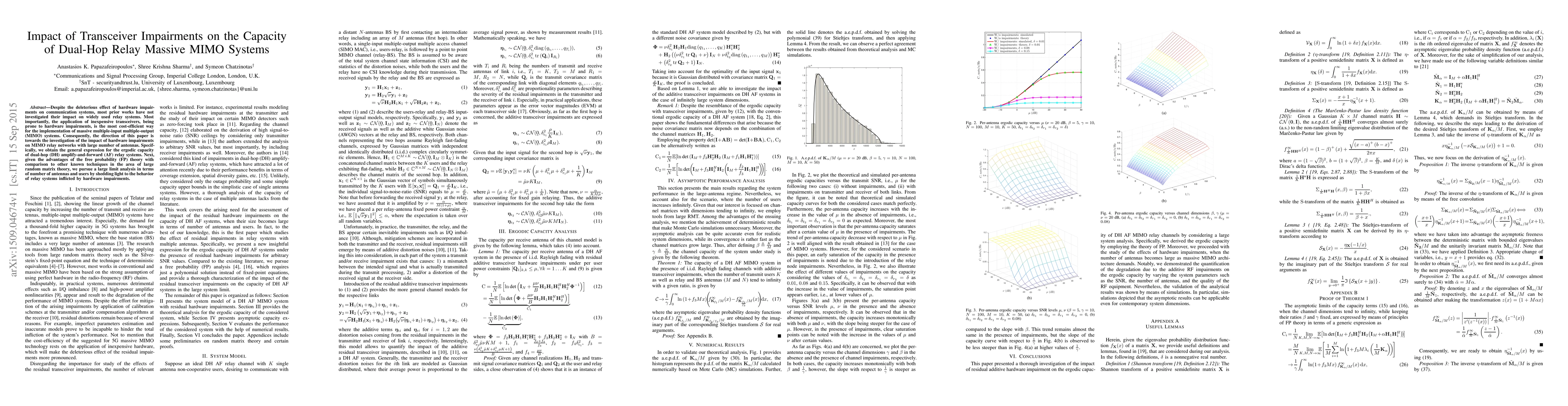 This paper investigates the impact of transceiver hardware impairments on the capacity of dual-hop massive MIMO relay systems. It derives the ergodic capacity expression for amplify-and-forward relay systems and uses free probability theory to analyze the behavior of these systems in the large-scale limit.