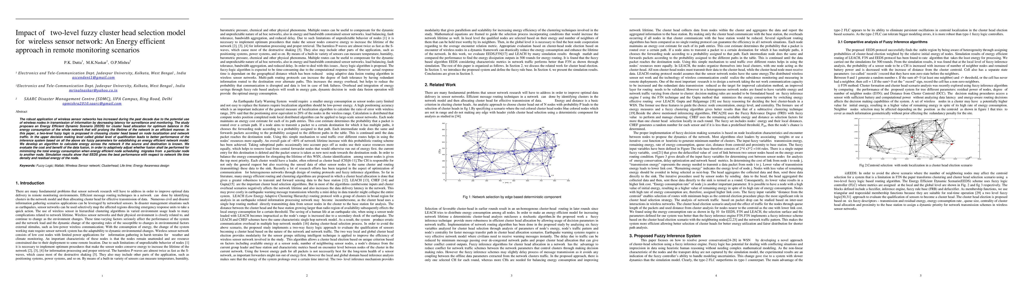 The robust application of wireless sensor networks has increased during the past decade due to the potential use of wireless nodes in transmission of information by decreasing latency for surveillance and monitoring. The study proposes an Energy Efficient Dynamic Scenario (EEDS) for cluster head allocation for optimum balance in the energy consumption of the whole network that will prolong the lifetime of the network in an efficient manner. In this paper, a two-level fuzzy logic is proposed in choosing cluster head based on node localization and network traffic. In the upper decision making level called global level of qualification leads to better performance of the inference system based on all the above six fuzzy parameters for establishing an energy efficient network model. We develop an algorithm to calculate energy across the network if the source and destination is known. We evaluate the cost and benefit of the data fusion, in order to adaptively adjust whether fusion shall be performed for minimizing the total energy consumption when energy efficient node scheduling migrates from a particular node to another node. Simulation results show that EEDS gives the best performance with respect to network life time density and residual energy of the node.
