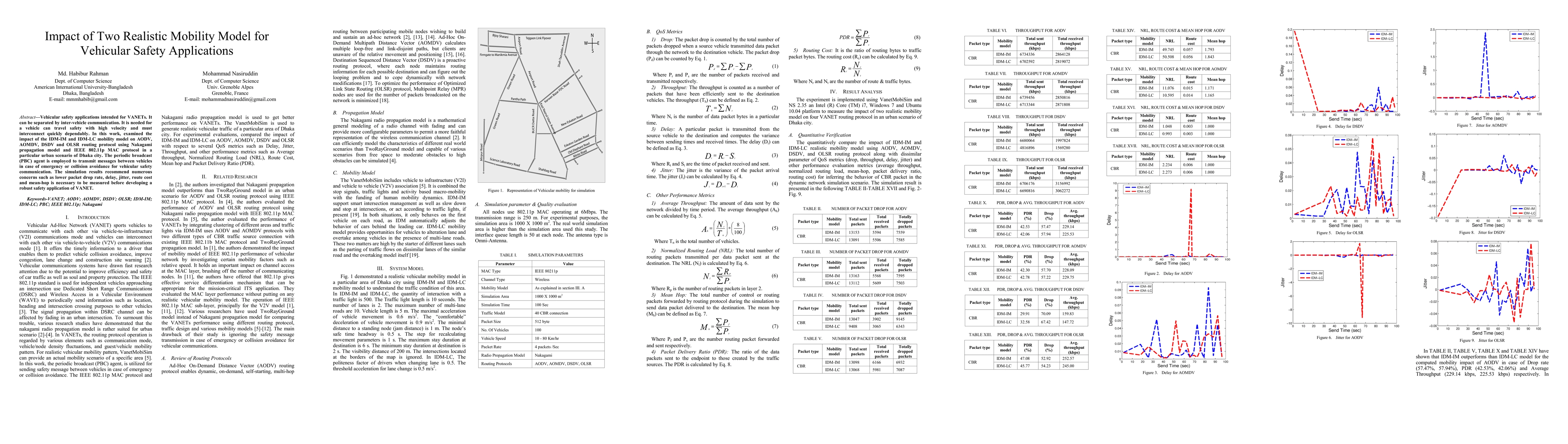 Vehicular safety applications intended for VANETs. It can be separated by inter-vehicle communication. It is needed for a vehicle can travel safety with high velocity and must interconnect quickly dependably. In this work, examined the impact of the IDM-IM and IDM-LC mobility model on AODV, AOMDV, DSDV and OLSR routing protocol using Nakagami propagation model and IEEE 802.11p MAC protocol in a particular urban scenario of Dhaka city. The periodic broadcast (PBC) agent is employed to transmit messages between vehicles in case of emergency or collision avoidance for vehicular safety communication. The simulation results recommend numerous concerns such as lower packet drop rate, delay, jitter, route cost and mean-hop is necessary to be measured before developing a robust safety application of VANET.