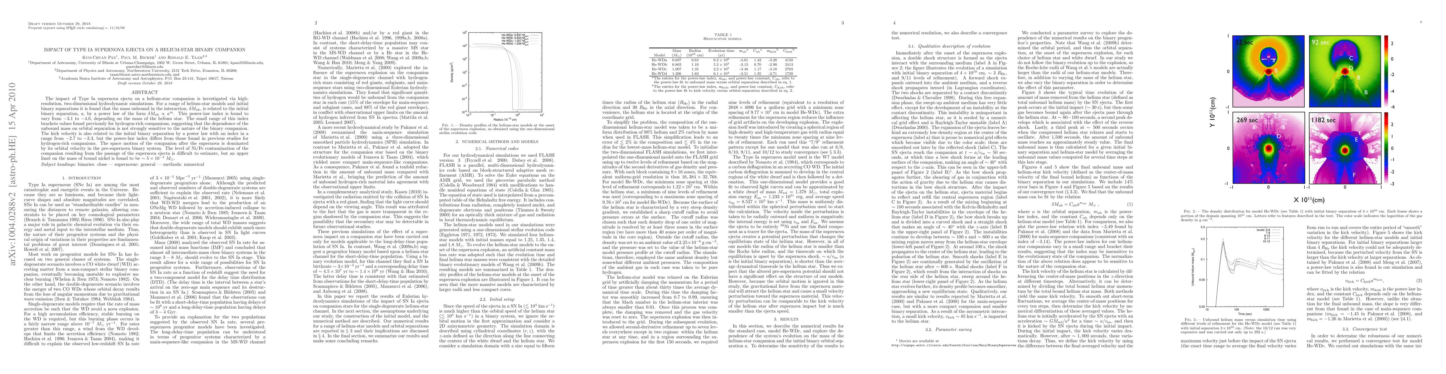 This study uses high-resolution simulations to explore the effects of Type Ia supernova ejecta on helium-star binary companions, revealing a power-law relationship between unbound mass and initial binary separation. The findings suggest that the unbound mass and kick velocity depend on separation, with indices similar to those for hydrogen-rich companions, though the exact values differ.