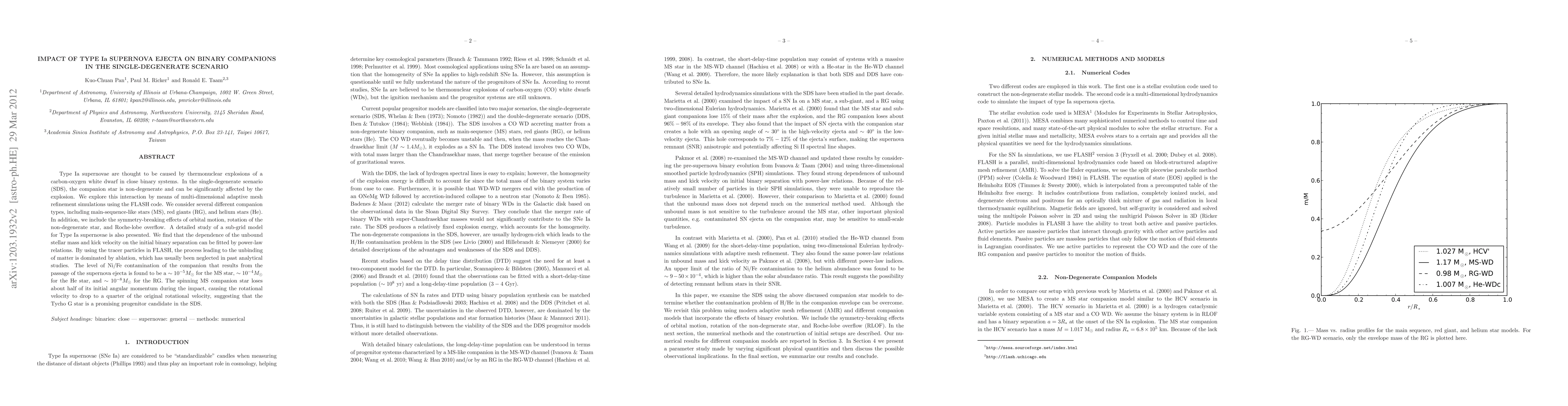 This study uses multi-dimensional simulations to investigate the effects of Type Ia supernova ejecta on binary companions in the single-degenerate scenario, finding that ablation dominates the unbinding of matter. The mass and velocity of ejected material depend on the initial binary separation, and the contamination of the companion star by Ni/Fe varies significantly with its type.