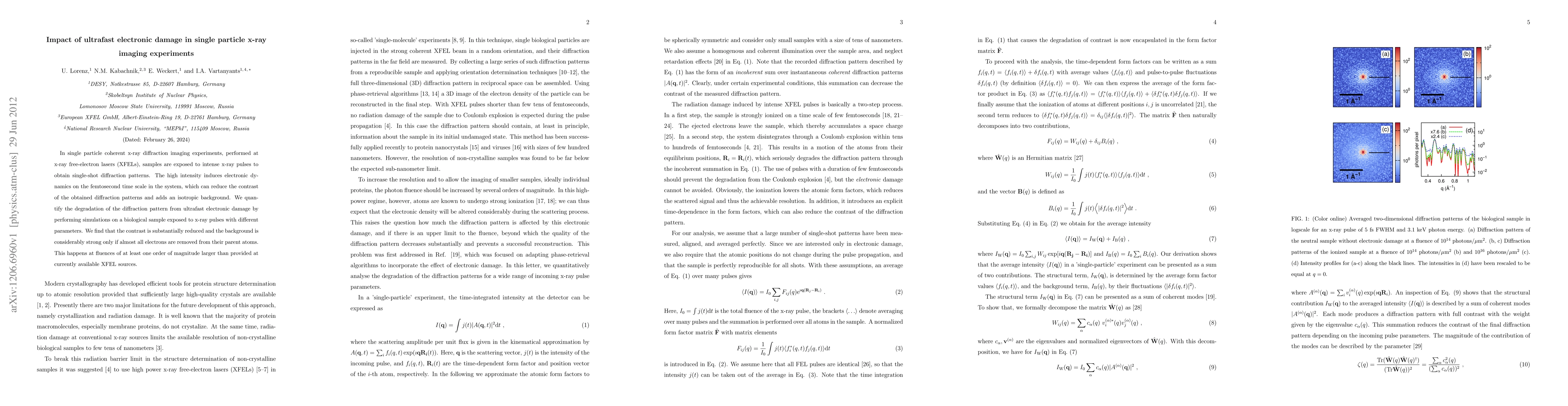This study investigates the impact of ultrafast electronic damage on single particle x-ray imaging at XFELs, finding that significant contrast reduction and background increase occur only when nearly all electrons are removed, which requires fluences much higher than currently available. Simulations on biological samples reveal the extent of diffraction pattern degradation under such conditions.