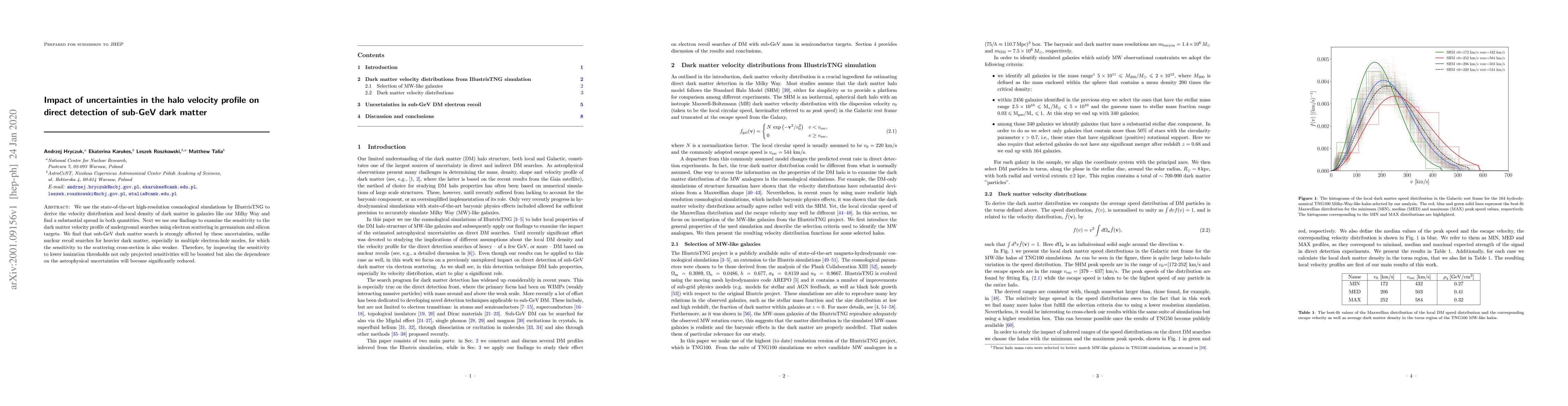 This study uses IllustrisTNG simulations to reveal significant uncertainties in dark matter halo velocity profiles and local density in galaxies. It finds that these uncertainties strongly impact sub-GeV dark matter searches using electron scattering in germanium and silicon targets, more so than heavier dark matter searches. Improving ionization threshold sensitivity could enhance projected sensitivities and lessen astrophysical uncertainty dependence.
