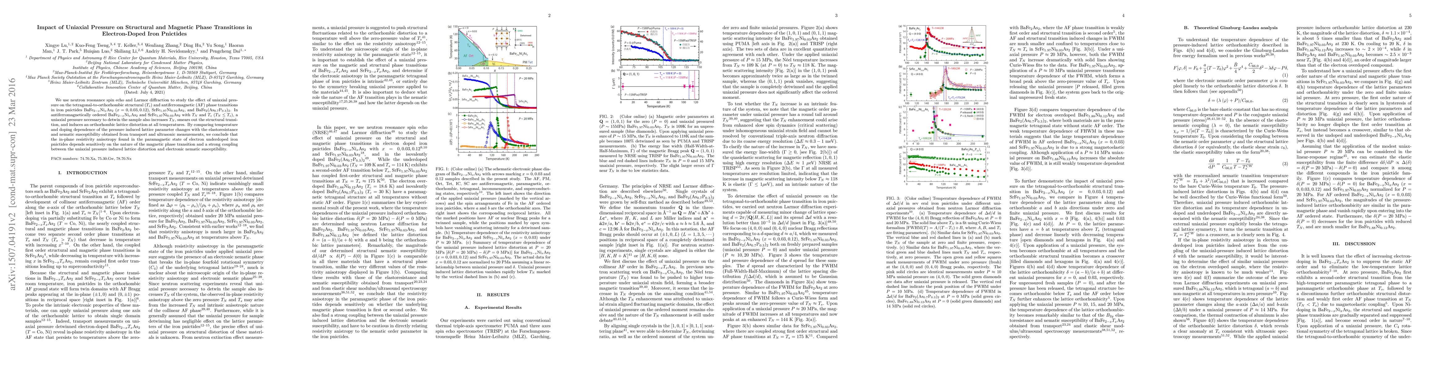 This study investigates the impact of uniaxial pressure on structural and magnetic phase transitions in electron-doped iron pnictides using neutron resonance techniques. It finds that uniaxial pressure increases the antiferromagnetic transition temperature, smears the structural transition, and induces orthorhombic lattice distortion, indicating a strong coupling between the pressure-induced lattice distortion and electronic nematic susceptibility.