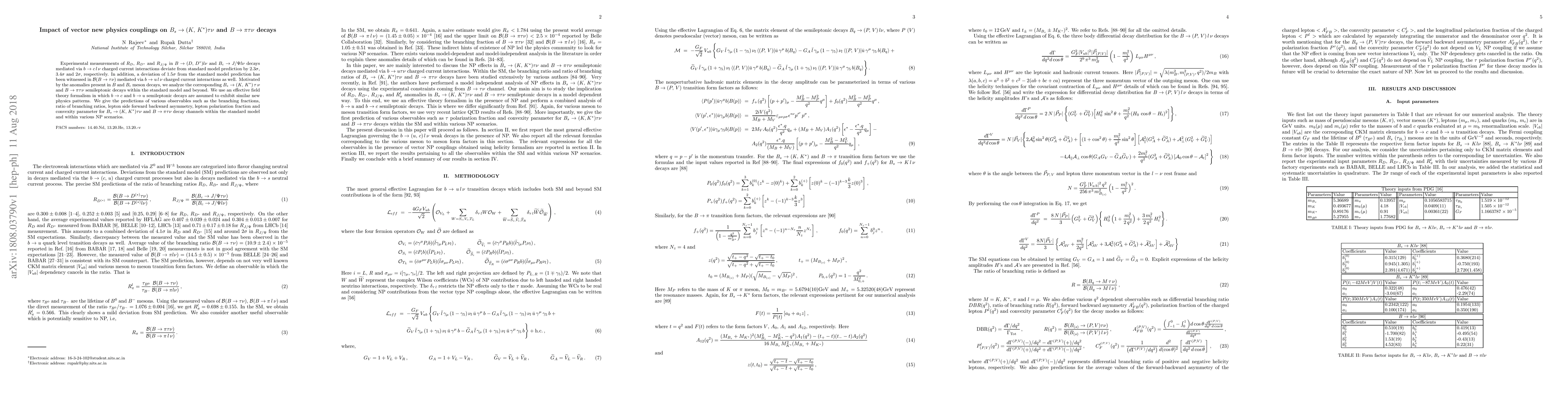 Experimental measurements of $R_{D}$, $R_{D^*}$ and $R_{J/\Psi}$ in $B \to (D,\,D^{\ast})l\nu$ and $B_c \to J/\Psi l \nu$ decays mediated via $b \to c\,l\,\nu$ charged current interactions deviate from standard model prediction by $2.3\sigma$, $3.4\sigma$ and $2\sigma$, respectively. In addition, a deviation of $1.5\sigma$ from the standard model prediction has been witnessed in $\mathcal B(B \to \tau \nu)$ mediated via $b \to u\,l\,\nu$ charged current interactions as well. Motivated by the anomalies present in $B$ and $B_c$ meson decays, we analyze the corresponding $B_s \to (K,\,K^{\ast})\,\tau\,\nu$ and $B \to \pi\tau\nu$ semileptonic decays within the standard model and beyond. We use an effective field theory formalism in which $b \to c$ and $b \to u$ semileptonic decays are assumed to exhibit similar new physics patterns. We give the predictions of various observables such as the branching fractions, ratio of branching ratios, lepton side forward backward asymmetry, lepton polarization fraction and convexity parameter for $B_s \to (K,\,K^{\ast})\tau \nu$ and $B \to \pi\tau\nu$ decay channels within the standard model and within various NP scenarios.