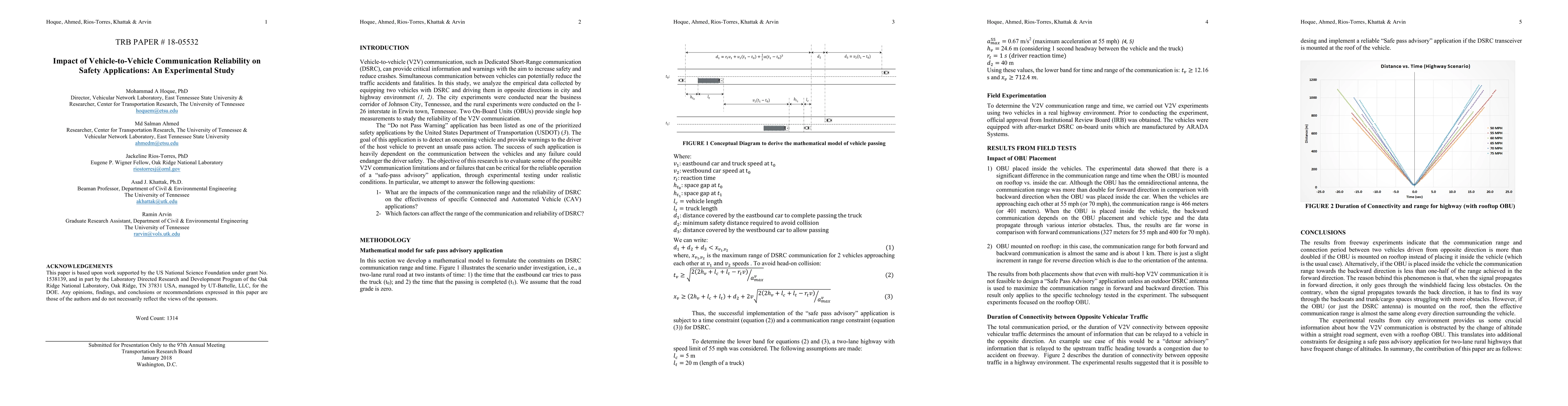 This paper investigates the impact of various factors on the reliability of Vehicle-to-Vehicle (V2V) communication via DSRC technology, focusing on relative vehicle speeds, altitude differences, and interior obstacles. Experimental data aims to quantify how these elements affect communication reliability and safety applications.