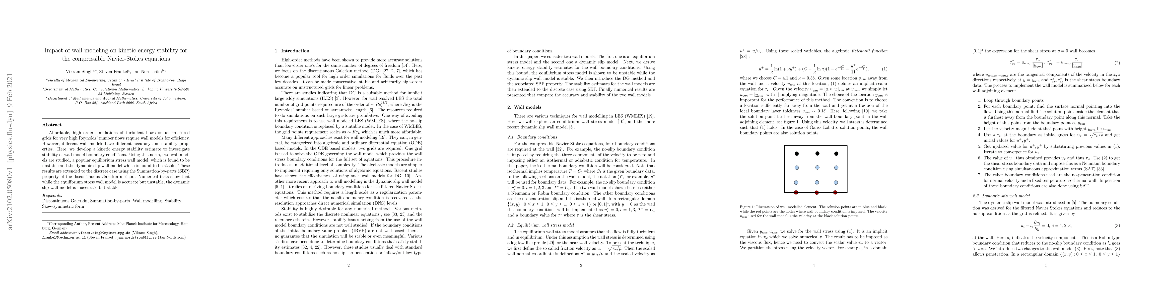 Researchers developed a kinetic energy stability estimate to study wall models for efficient simulations of turbulent flows. They found that a dynamic slip wall model is stable but inaccurate, while an equilibrium stress wall model is accurate but unstable.