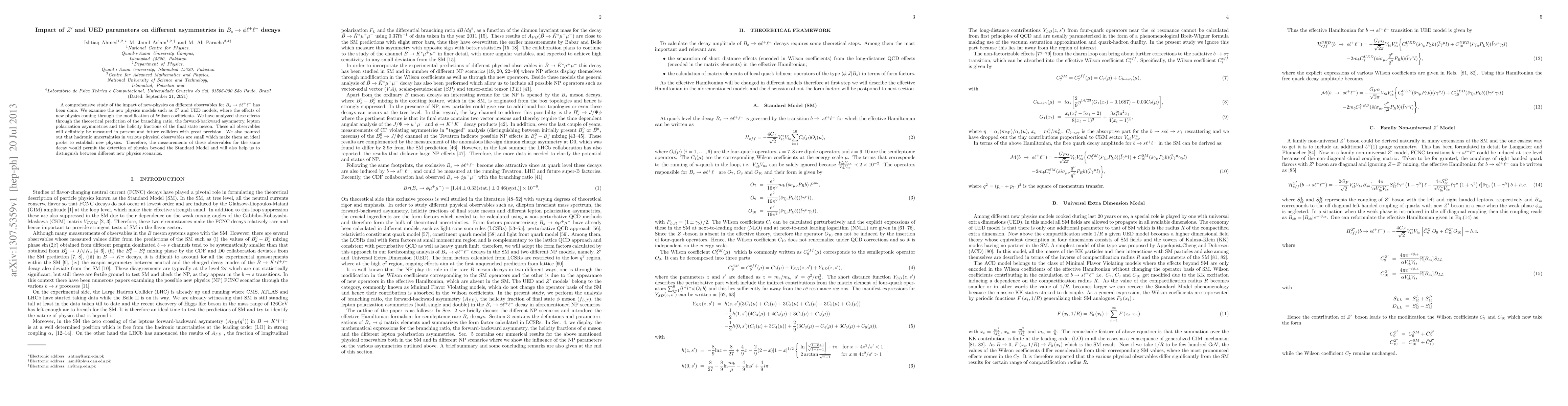 Researchers studied how new physics models like $Z^{ extprime}$ and UED affect various observables in a specific particle decay, finding that these effects can help detect physics beyond the Standard Model with great precision.