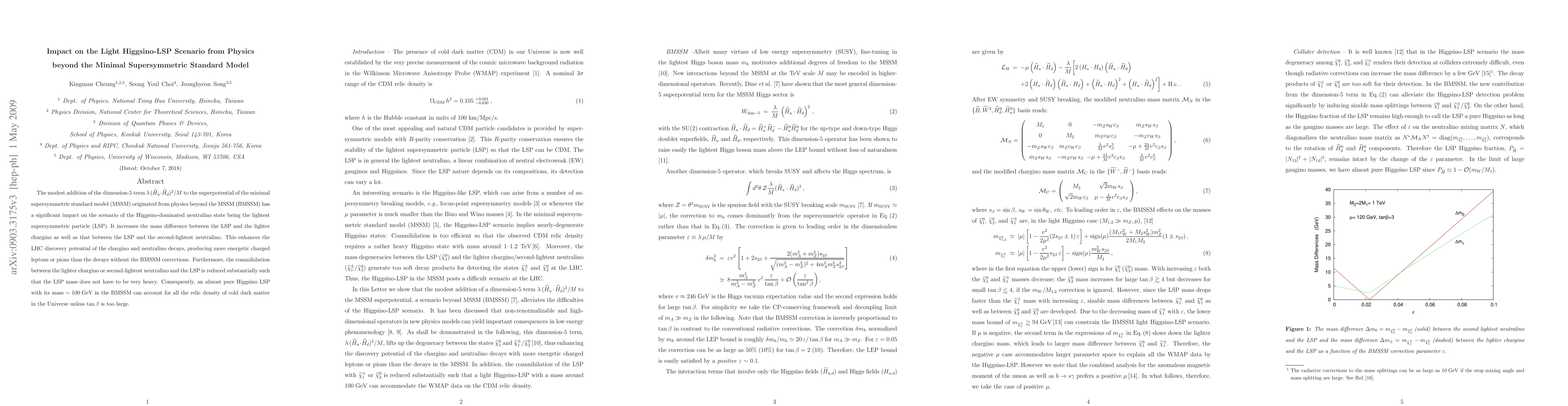 The modest addition of the dimension-5 term lambda(H_u.H_d)^2/M to the superpotential of the minimal supersymmetric standard model (MSSM) originated from physics beyond the MSSM (BMSSM) has a significant impact on the scenario of the Higgsino-dominated neutralino state being the lightest supersymmetric particle (LSP). It increases the mass difference between the LSP and the lighter chargino as well as that between the LSP and the second-lightest neutralino. This enhances the LHC discovery potential of the chargino and neutralino decays, producing more energetic charged leptons or pions than the decays without the BMSSM corrections. Furthermore, the coannihilation between the lighter chargino or second-lightest neutralino and the LSP is reduced substantially such that the LSP mass does not have to be very heavy. Consequently, an almost pure Higgsino LSP with its mass ~100 GeV in the BMSSM can account for all the relic density of cold dark matter in the Universe unless tan(beta) is too large.