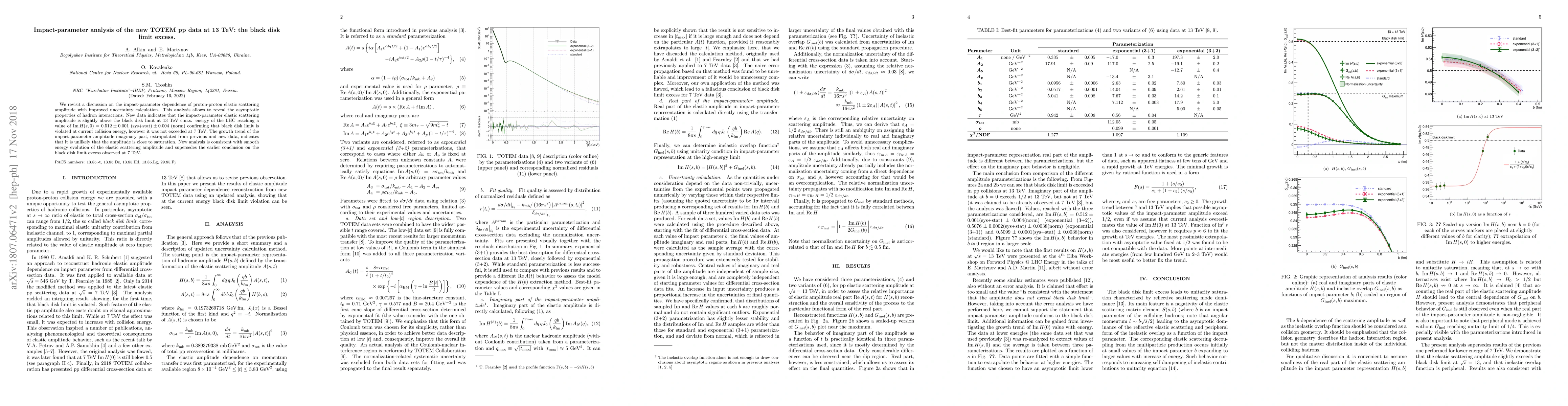 We revisit a discussion on the impact-parameter dependence of proton-proton elastic scattering amplitude with improved uncertainty calculation. This analysis allows to reveal the asymptotic properties of hadron interactions. New data indicates that the impact-parameter elastic scattering amplitude is slightly above the black disk limit at 13~TeV c.m.s. energy of the LHC reaching a value of $\mathrm{Im}\,H(s,0) = 0.512\pm 0.001\ \text{(sys+stat)} \pm 0.004\ \text{(norm)}$ confirming that black disk limit is violated at current collision energy, however it was not exceeded at 7~TeV. The growth trend of the impact-parameter amplitude imaginary part, extrapolated from previous and new data, indicates that it is unlikely that the amplitude is close to saturation. New analysis is consistent with smooth energy evolution of the elastic scattering amplitude and supersedes the earlier conclusion on the black disk limit excess observed at 7~TeV.