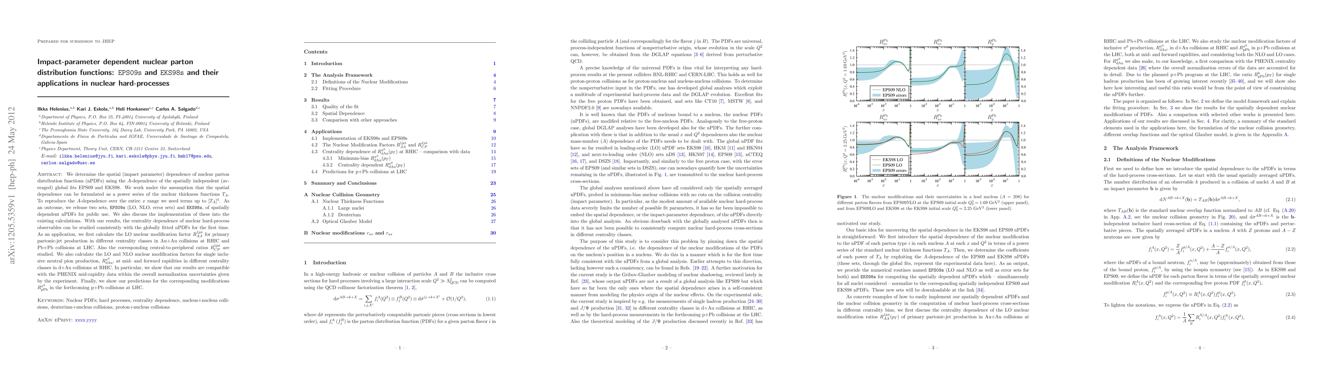 This paper determines the spatial dependence of nuclear parton distribution functions (nPDFs) using global fits EPS09 and EKS98, releasing new sets EPS09s and EKS98s for public use. It applies these to study centrality dependence in nuclear hard processes, including jet production and neutral pion production in various collision scenarios.