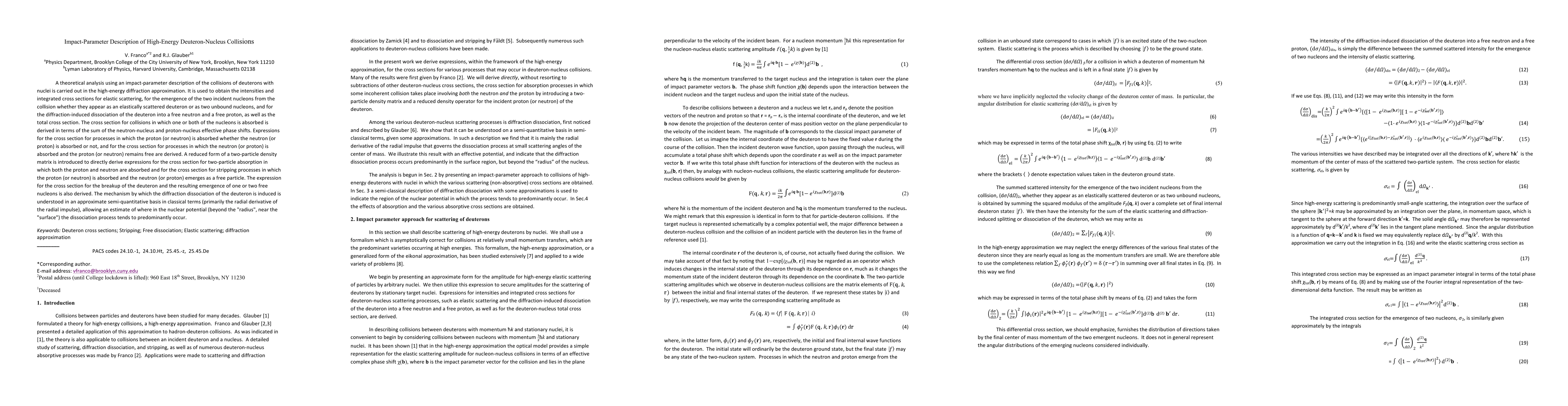 This paper uses a theoretical analysis to study the collisions of deuterons with nuclei at high energies, predicting key features such as elastic scattering, nuclear dissociation, and particle absorption.