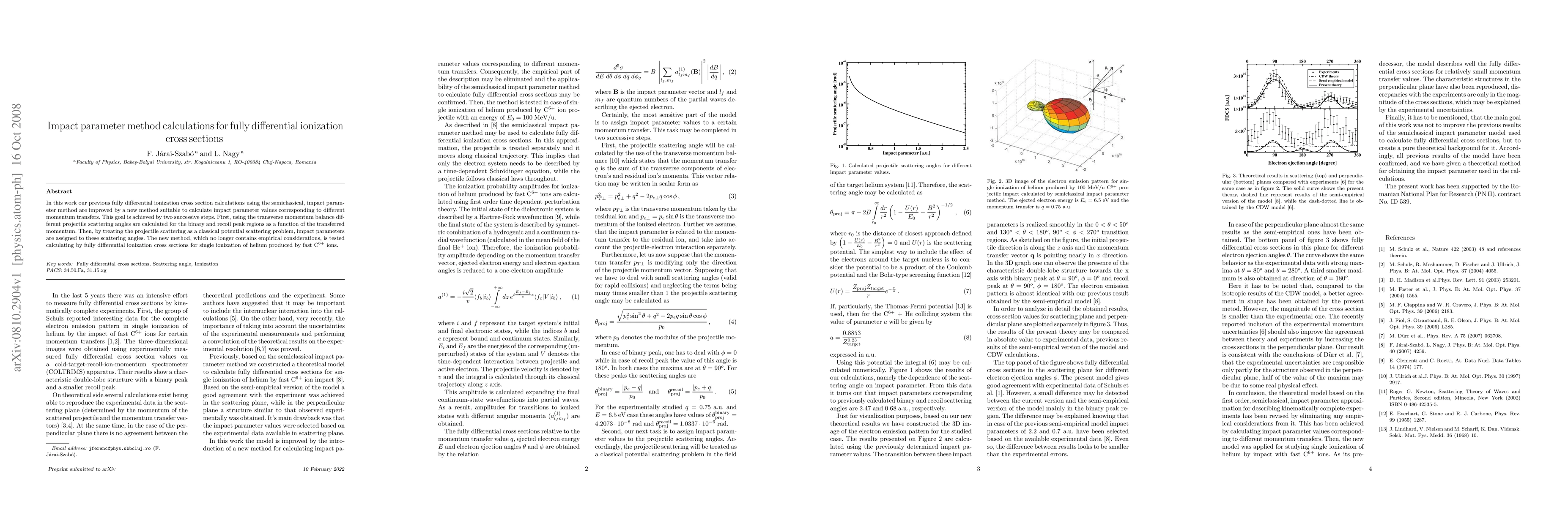 This paper improves the semiclassical impact parameter method for calculating fully differential ionization cross sections by introducing a new method to determine impact parameters for various momentum transfers. The method assigns impact parameters to scattering angles derived from transverse momentum balance, tested on single ionization of helium by fast C$^{6+}$ ions.