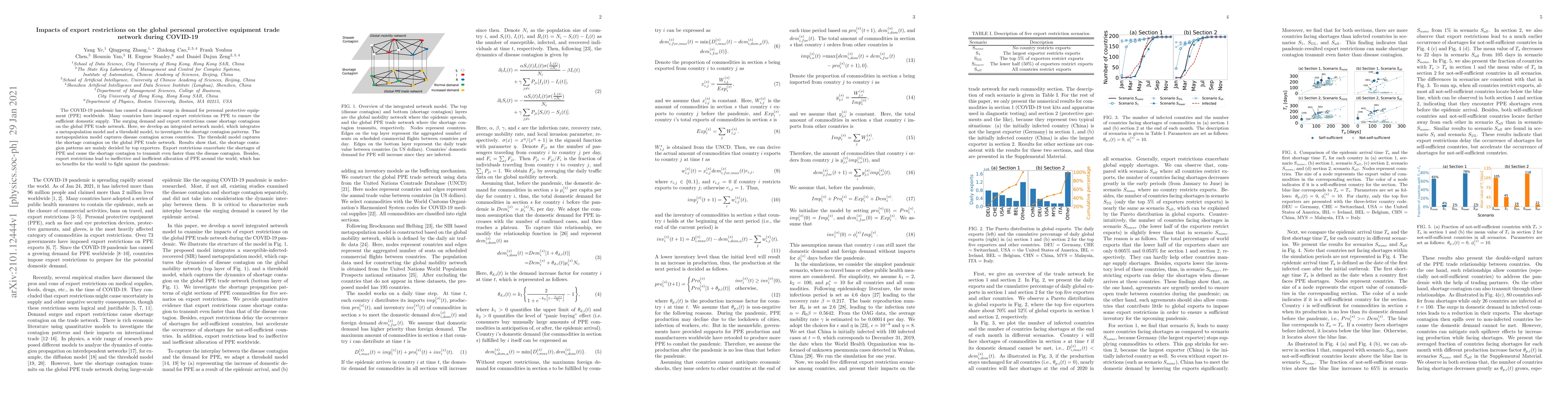 This study uses an integrated network model to analyze how export restrictions on personal protective equipment (PPE) during the COVID-19 pandemic lead to global shortages and inefficient allocation, showing that top exporters' restrictions exacerbate these issues more than disease contagion.