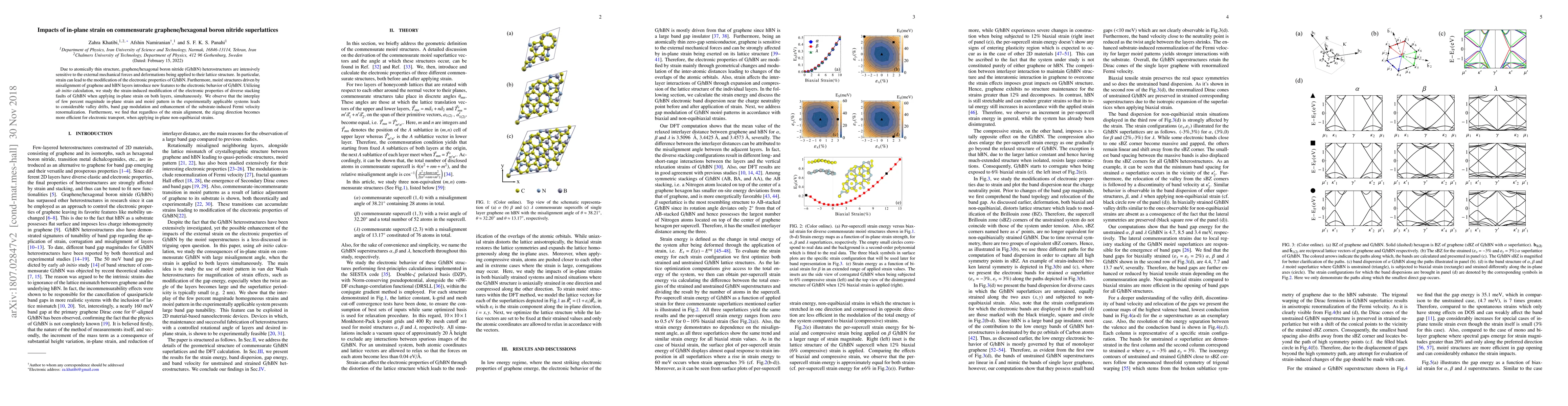 This study investigates how in-plane strain impacts the electronic properties of graphene/hexagonal boron nitride superlattices, revealing significant modulation of band gaps, valley drifts, and enhanced Fermi velocity renormalization. Non-equibiaxial strains in particular favor zigzag directions for electronic transport.