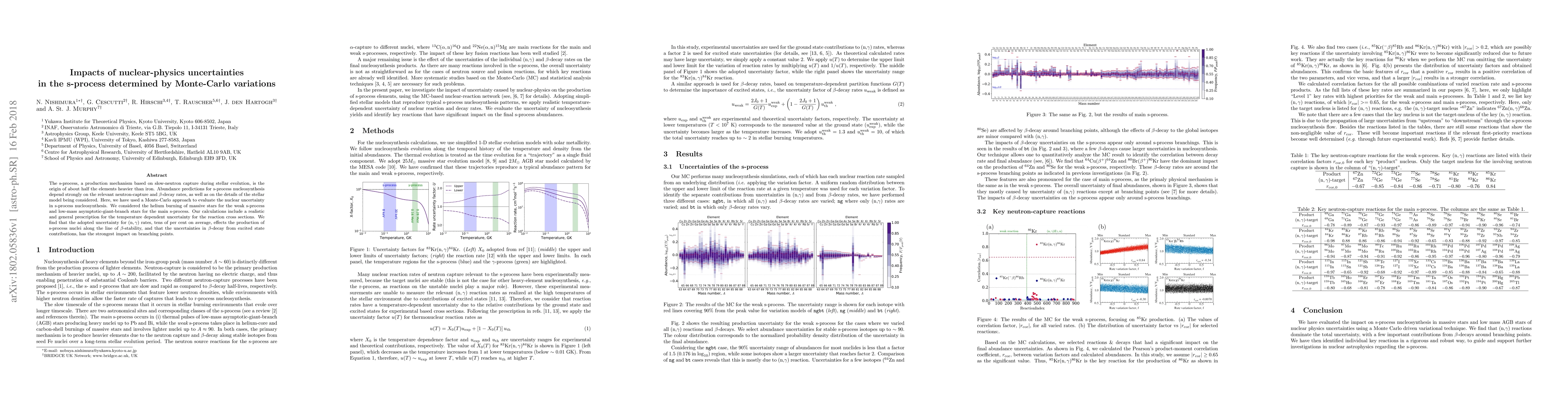 This study uses Monte-Carlo simulations to assess nuclear-physics uncertainties in s-process nucleosynthesis, finding that uncertainties in neutron-capture and $\beta$-decay rates significantly affect s-process element production, especially at branching points.