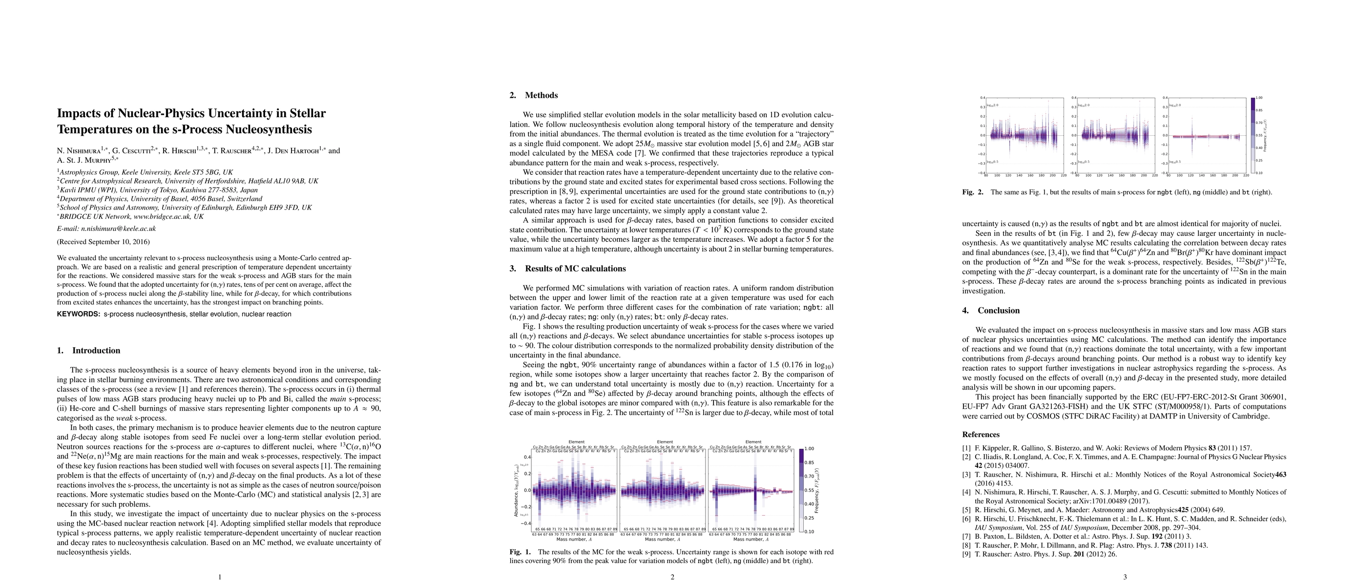 Uncertainty in nuclear-physics calculations affects s-process nucleosynthesis in stellar temperatures, particularly at branching points, while having the strongest impact on beta-decay.