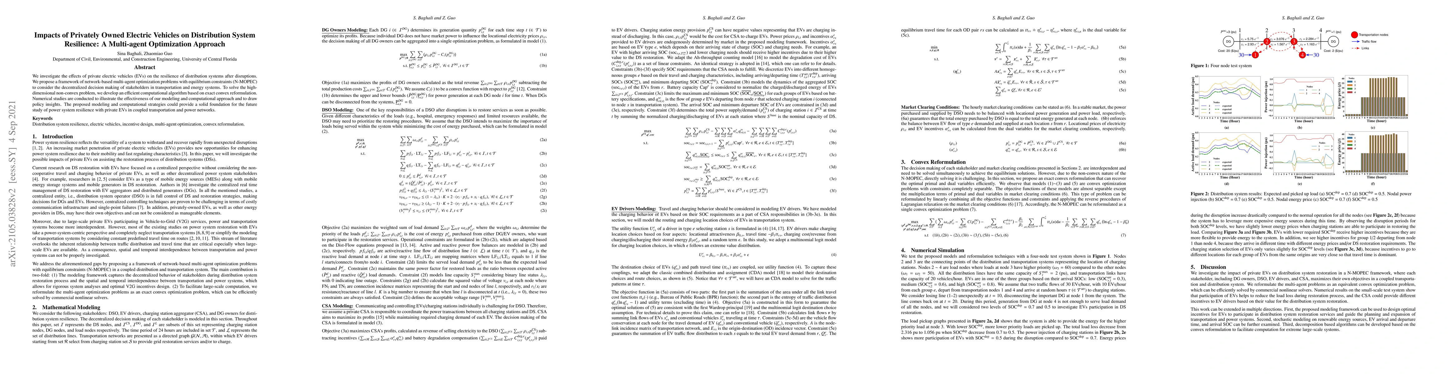 This paper explores the influence of privately owned electric vehicles on the resilience of distribution systems post-disruption using a multi-agent optimization framework. It introduces an efficient computational algorithm to solve high-dimensional non-convex problems, demonstrating its effectiveness through numerical studies and providing policy insights for future power system resilience studies.