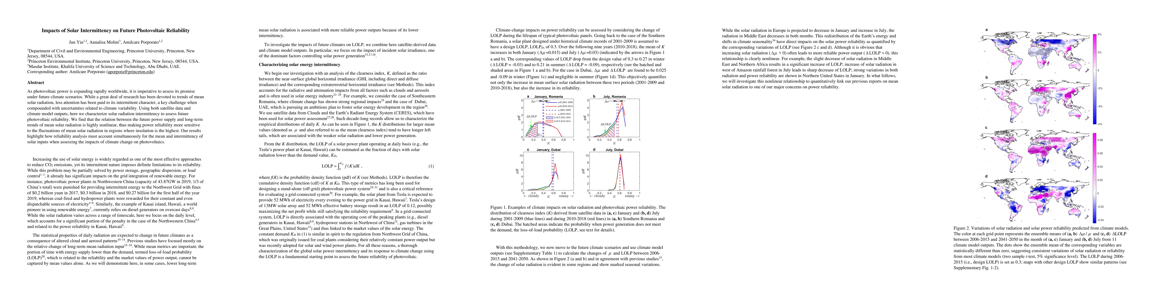 As photovoltaic power is expanding rapidly worldwide, it is imperative to assess its promise under future climate scenarios. While a great deal of research has been devoted to trends of mean solar radiation, less attention has been paid to its intermittent character, a key challenge when compounded with uncertainties related to climate variability. Using both satellite data and climate model outputs, here we characterize solar radiation intermittency to assess future photovoltaic reliability. We find that the relation between the future power supply and long-term trends of mean solar radiation is highly nonlinear, thus making power reliability more sensitive to the fluctuations of mean solar radiation in regions where insolation is the highest. Our results highlight how reliability analysis must account simultaneously for the mean and intermittency of solar inputs when assessing the impacts of climate change on photovoltaics.