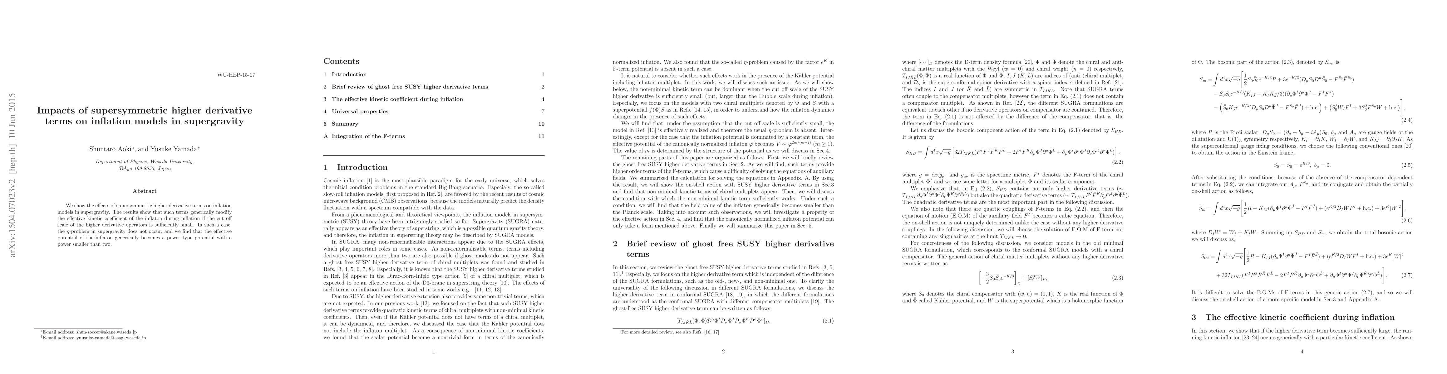 Summary: Supersymmetric higher derivative terms in supergravity modify the effective kinetic coefficient of the inflaton, resolving the $\eta$-problem and leading to a power type potential for the inflaton with a power smaller than two, provided the cutoff scale is sufficiently small.