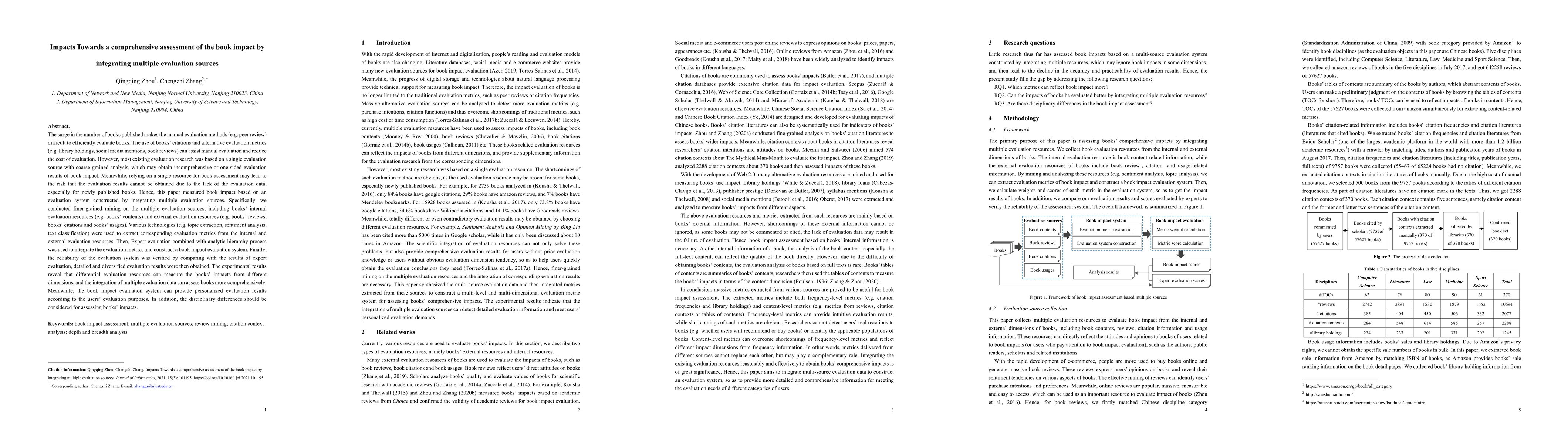 The surge in the number of books published makes the manual evaluation methods difficult to efficiently evaluate books. The use of books' citations and alternative evaluation metrics can assist manual evaluation and reduce the cost of evaluation. However, most existing evaluation research was based on a single evaluation source with coarse-grained analysis, which may obtain incomprehensive or one-sided evaluation results of book impact. Meanwhile, relying on a single resource for book assessment may lead to the risk that the evaluation results cannot be obtained due to the lack of the evaluation data, especially for newly published books. Hence, this paper measured book impact based on an evaluation system constructed by integrating multiple evaluation sources. Specifically, we conducted finer-grained mining on the multiple evaluation sources, including books' internal evaluation resources and external evaluation resources. Various technologies (e.g. topic extraction, sentiment analysis, text classification) were used to extract corresponding evaluation metrics from the internal and external evaluation resources. Then, Expert evaluation combined with analytic hierarchy process was used to integrate the evaluation metrics and construct a book impact evaluation system. Finally, the reliability of the evaluation system was verified by comparing with the results of expert evaluation, detailed and diversified evaluation results were then obtained. The experimental results reveal that differential evaluation resources can measure the books' impacts from different dimensions, and the integration of multiple evaluation data can assess books more comprehensively. Meanwhile, the book impact evaluation system can provide personalized evaluation results according to the users' evaluation purposes. In addition, the disciplinary differences should be considered for assessing books' impacts.